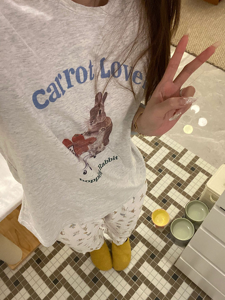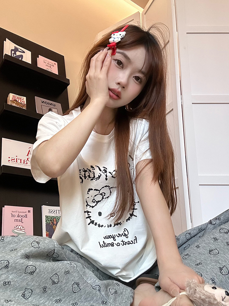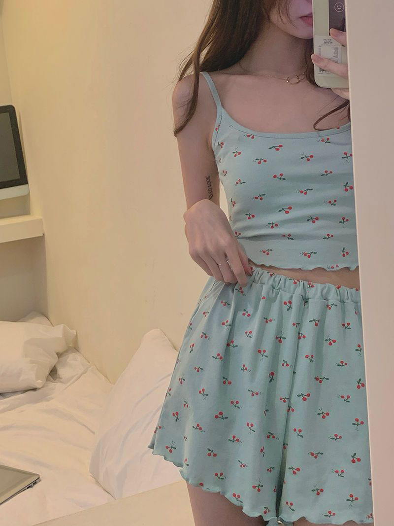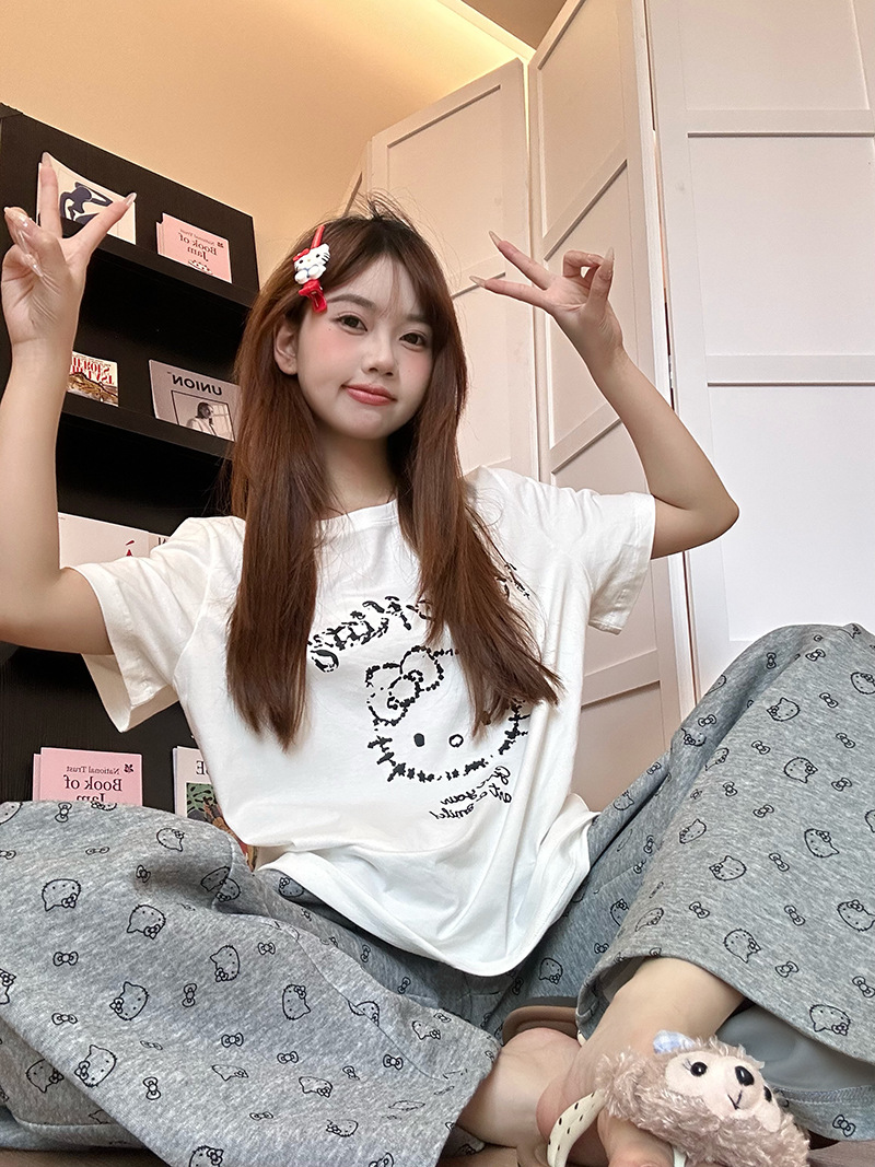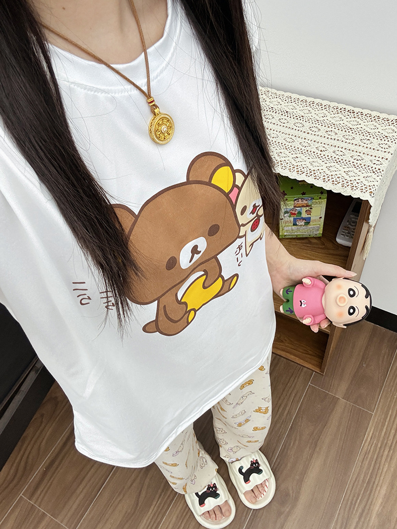 2024 년 여름 새 파자마 여성 반팔 바지 느슨한 홈 의류 일본 캐주얼 격자 무늬 세트스토어 가기
