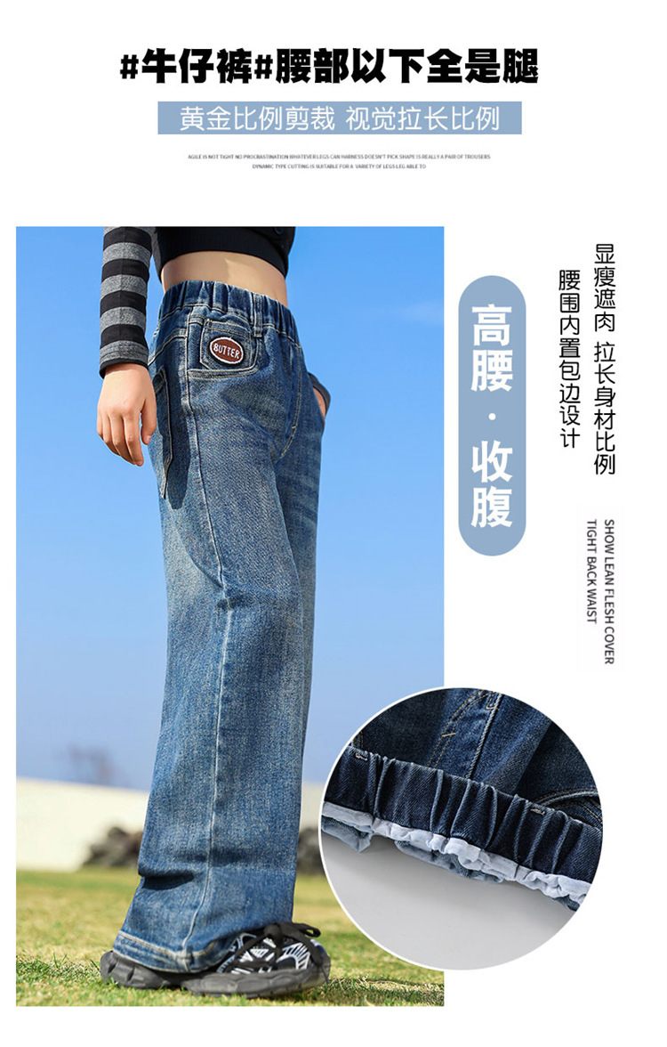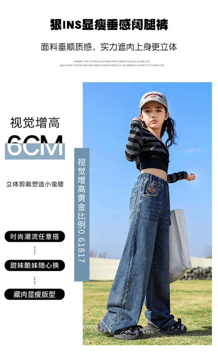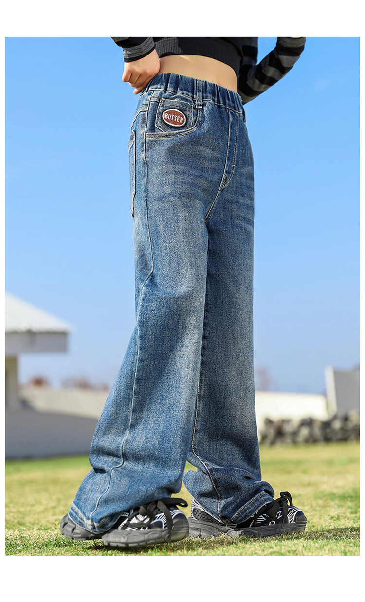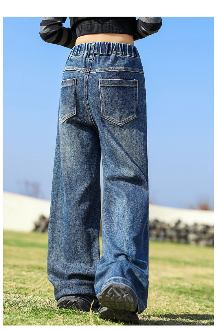 소녀의 평범한 넓은 다리 바지 2024 봄 새로운 한국식 어린이 바지 중형 및 대형 어린이 느슨한 캐주얼 청바지 대외 무역 패션스토어 가기