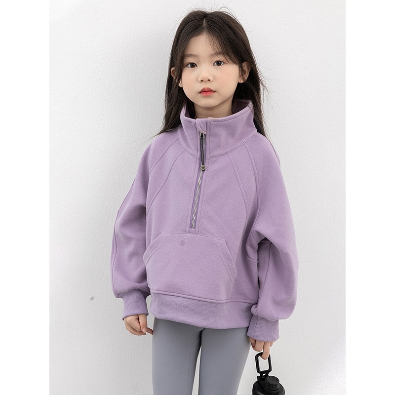 룰루와 같은 스타일의 여아용 스포츠 재킷 2025 봄 신상 아동용 스탠드 칼라 반지퍼 스웨트셔츠 긴팔 루즈핏 상의