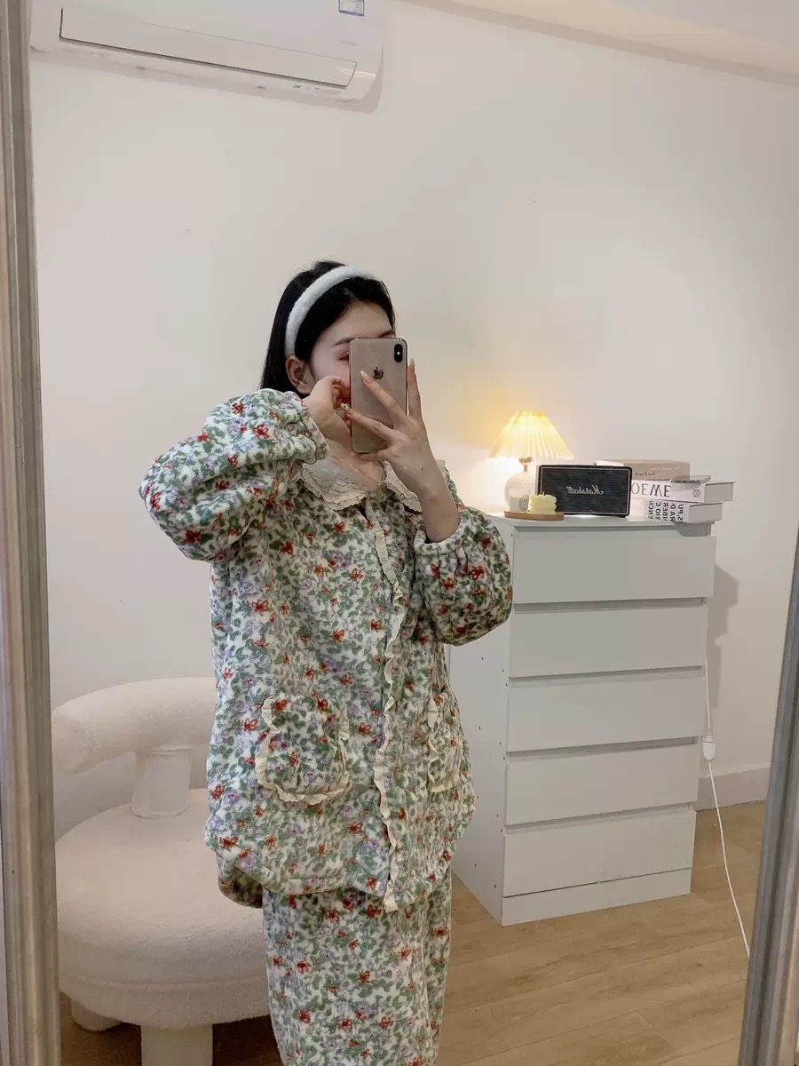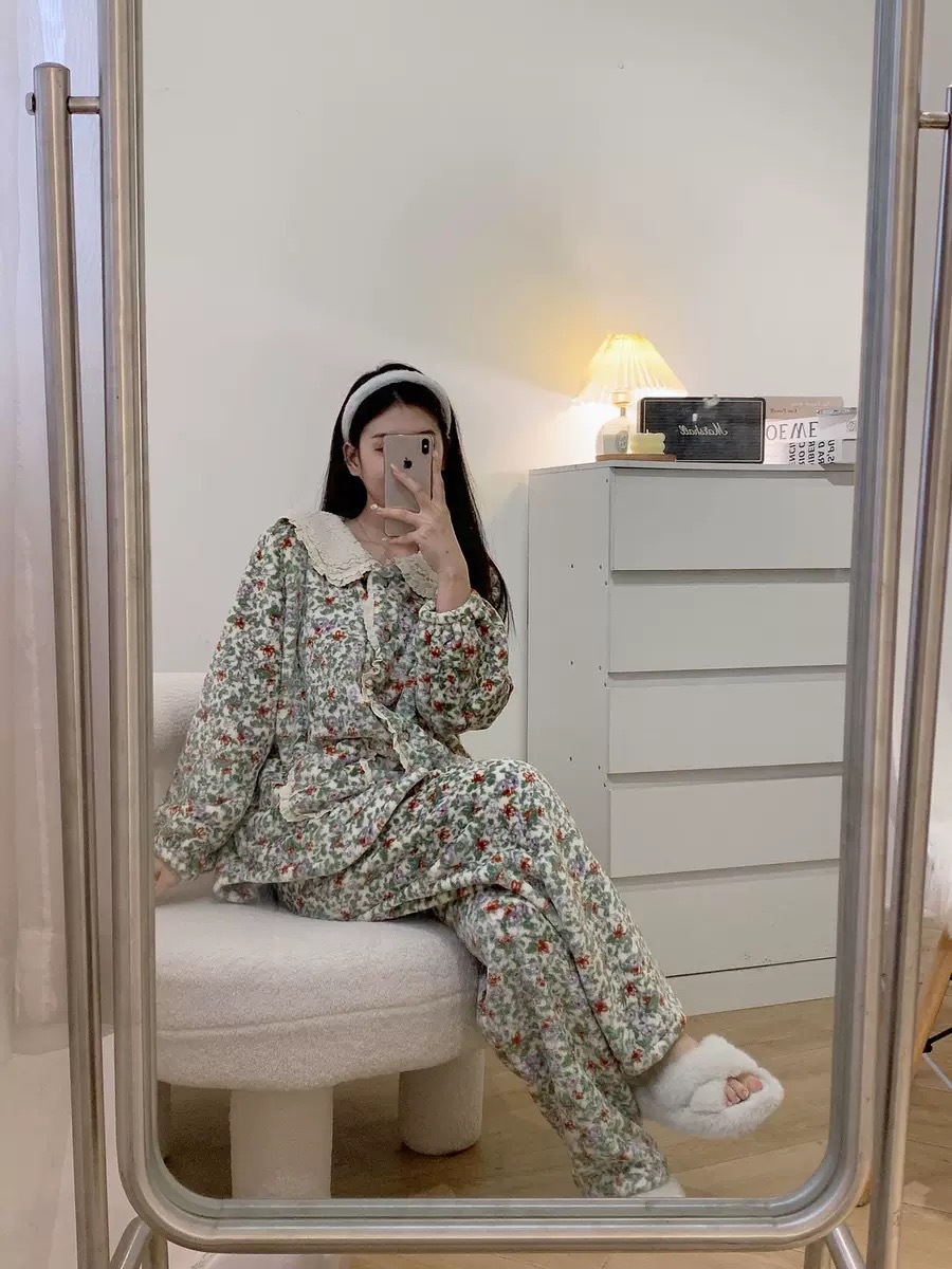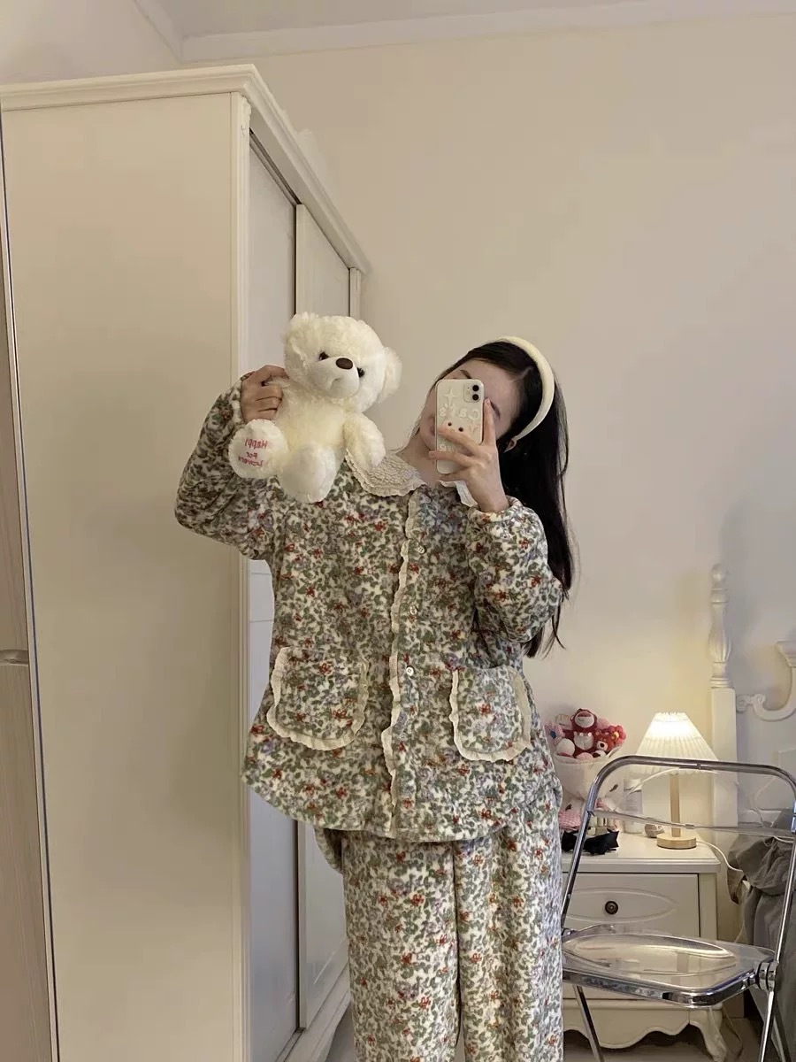 한국 한국 스타일 가을과 겨울 달콤한 인형 칼라 꽃 긴 소매 바지 홈 착용 잠옷 세트 여성스토어 가기