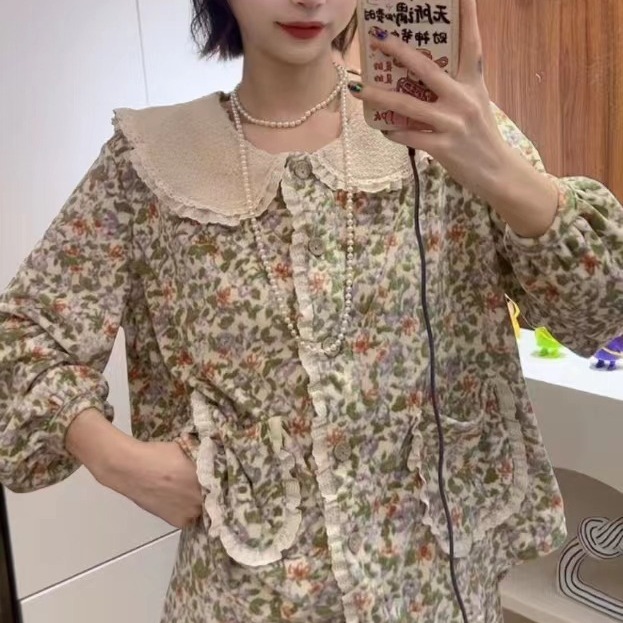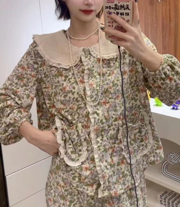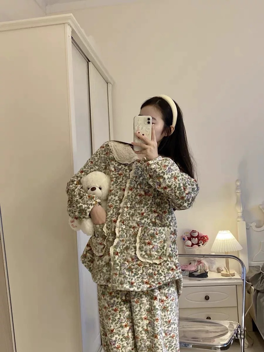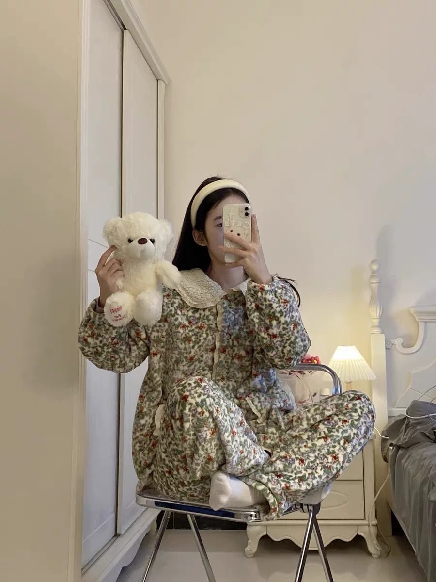 한국 한국 스타일 가을과 겨울 달콤한 인형 칼라 꽃 긴 소매 바지 홈 착용 잠옷 세트 여성스토어 가기