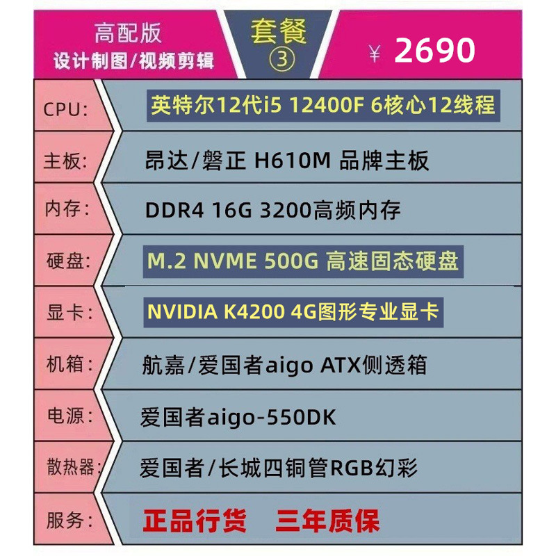 • 패키지 3 점장 추천 12세대 i5/16G/K4200 그래픽 전문 카드/500G