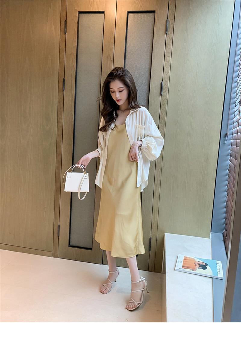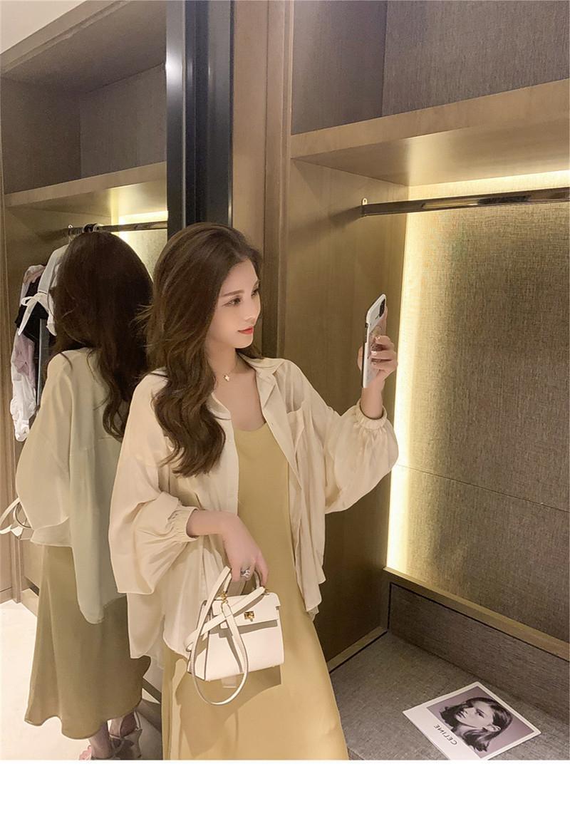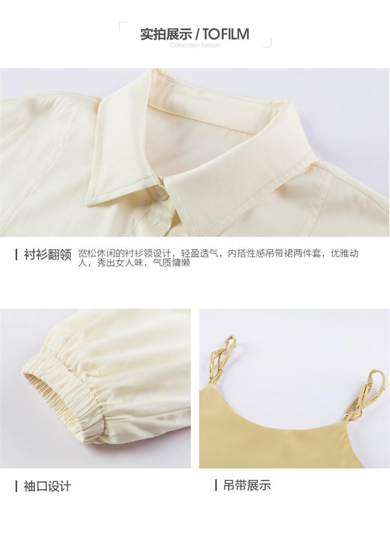 통통한 소녀 봄과 여름 2023 새로운 프랑스 복고풍 셔츠 슬림 대형 슬링 원피스 여성용 투피스 세트
