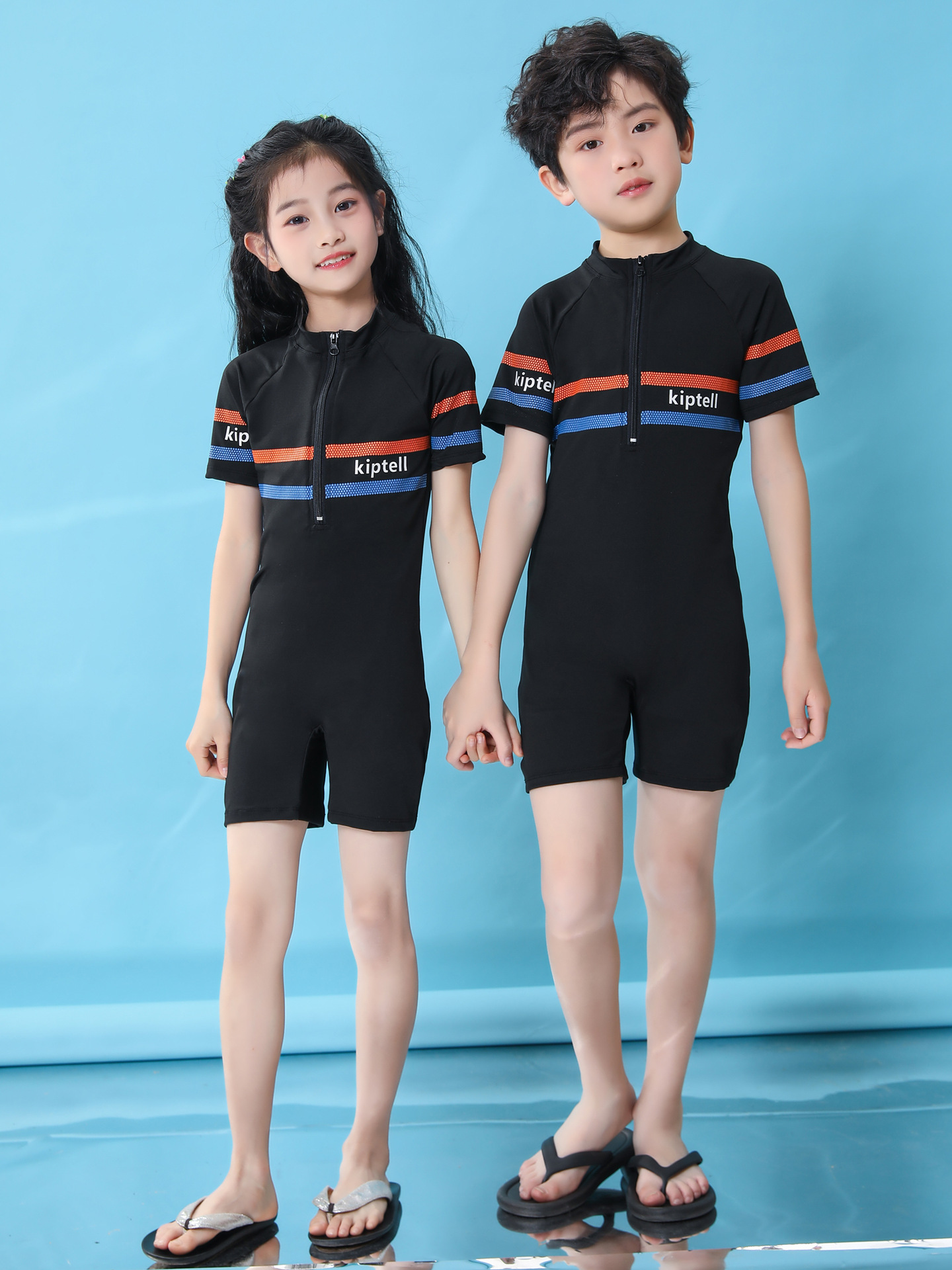 어린이 원피스 반팔 복서 수영복 소형 중형 및 대형 소년 소녀 부모-자식 수영복 한국식 형제 자매 빠른 건조 훈련복