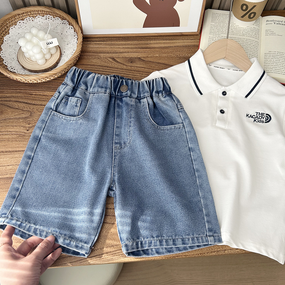 2024 년 여름 아동복 소년과 어린이 한국 유행 데님 반바지 도매 세대