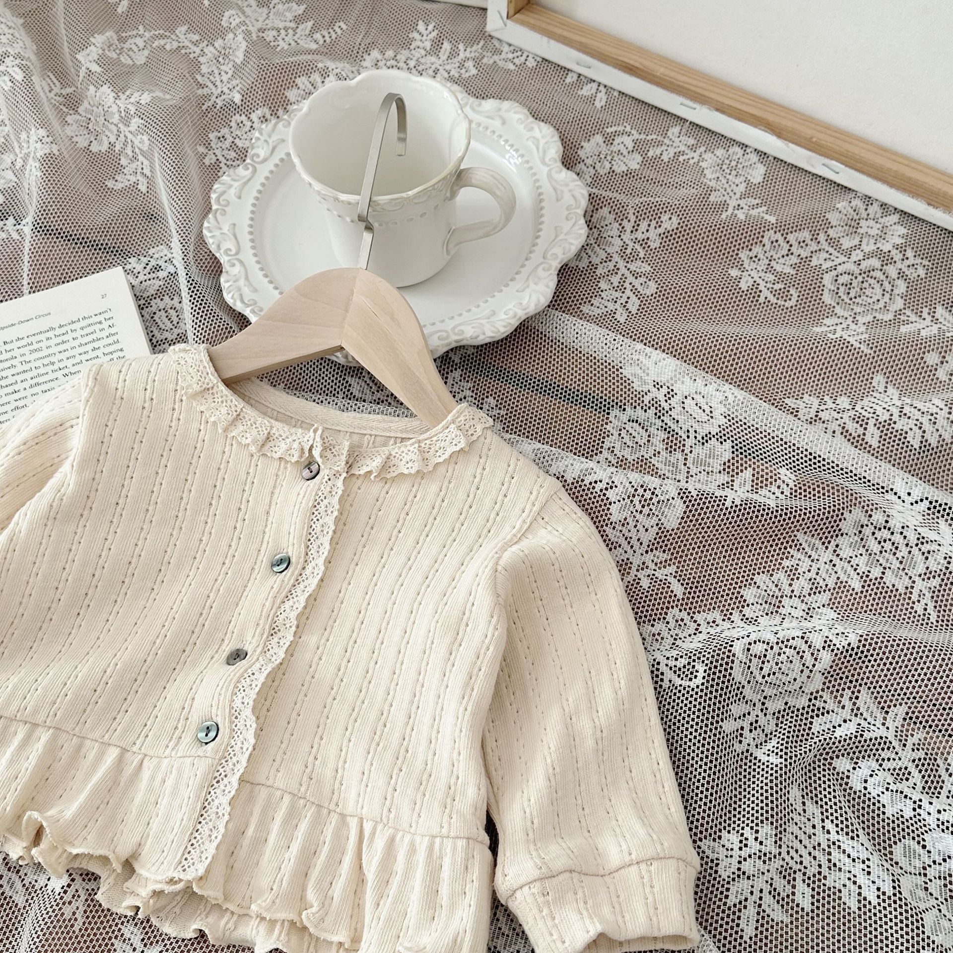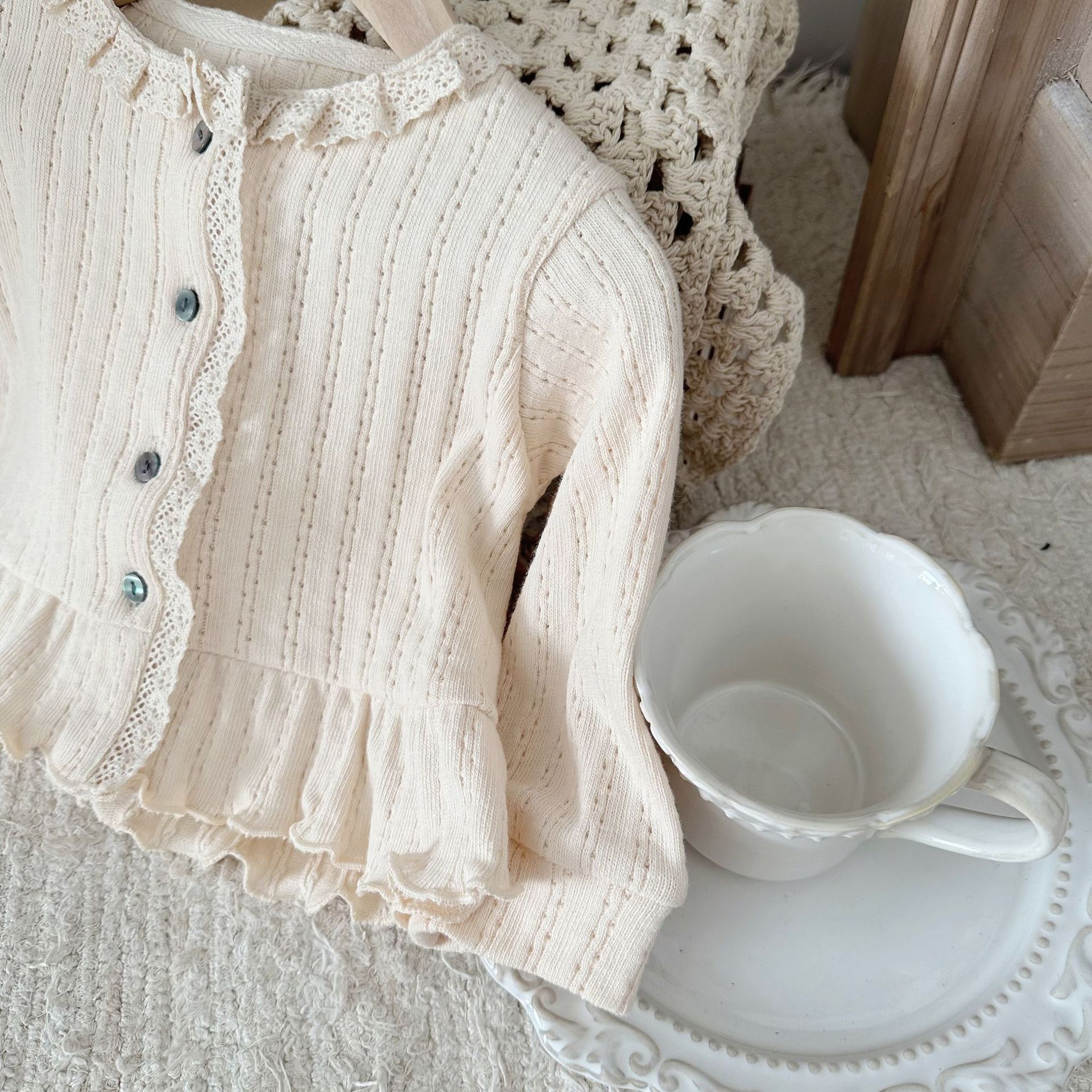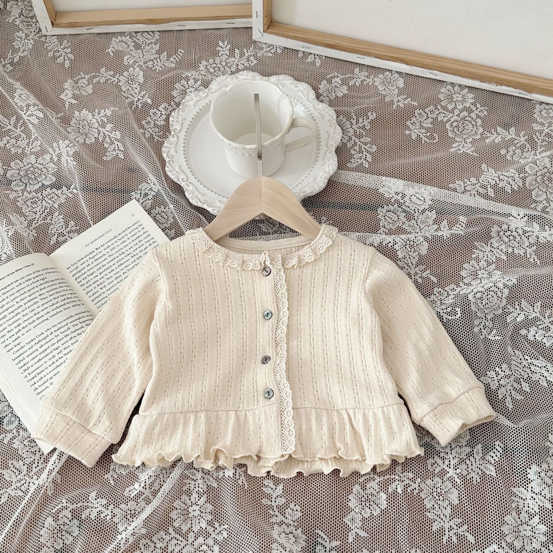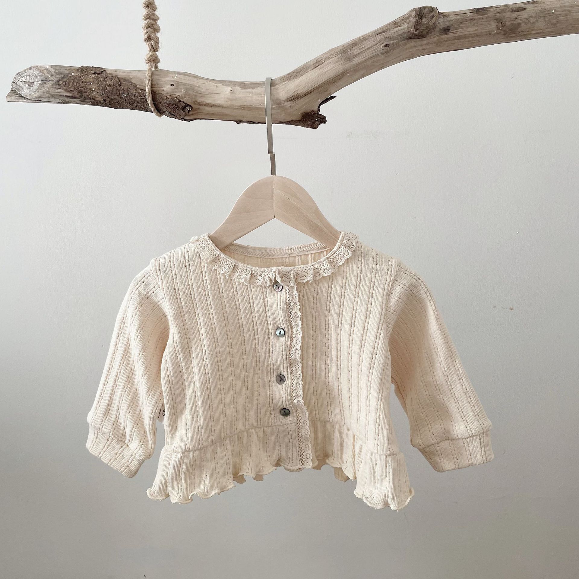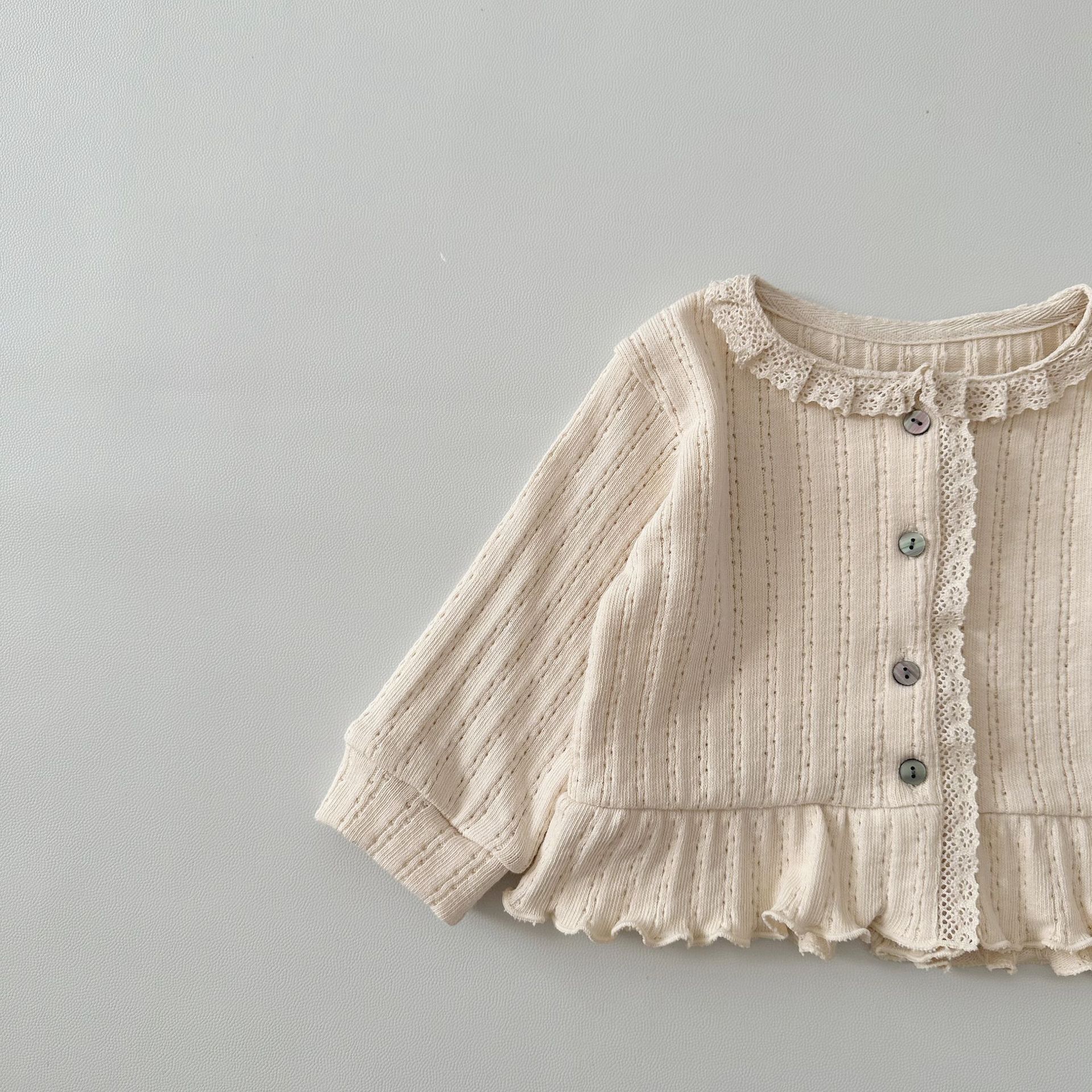 INS 스타일 아기 봄과 가을 레이스 둥근 목 긴 소매 카디건 아기 소녀 간단한 싱글 브레스트 feibian 코트스토어 가기