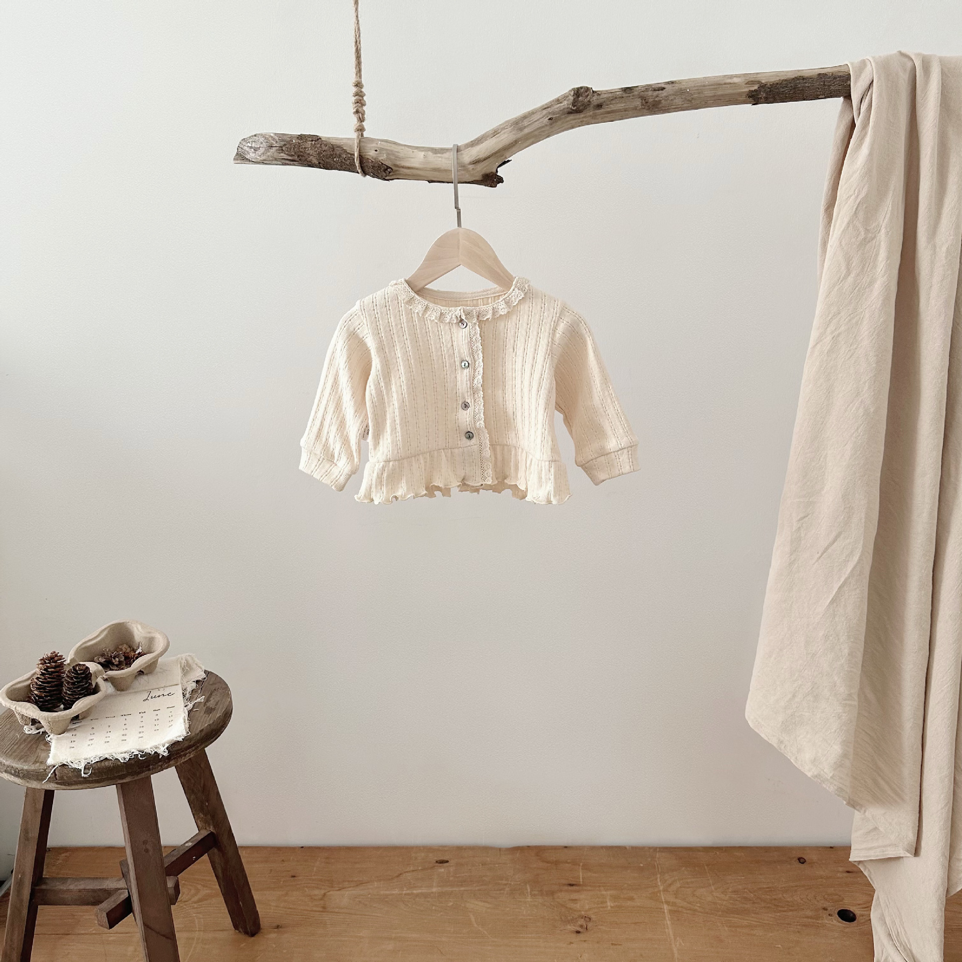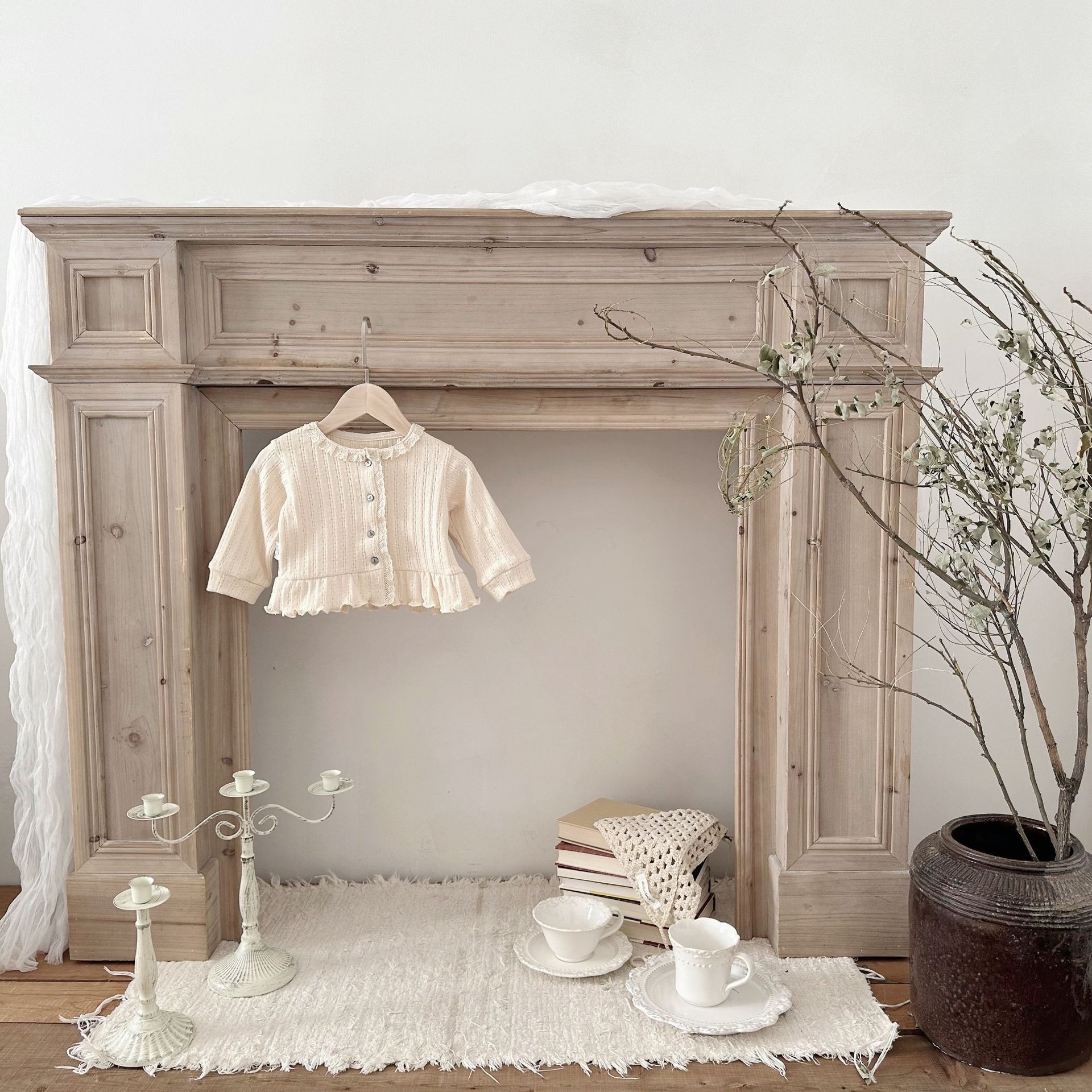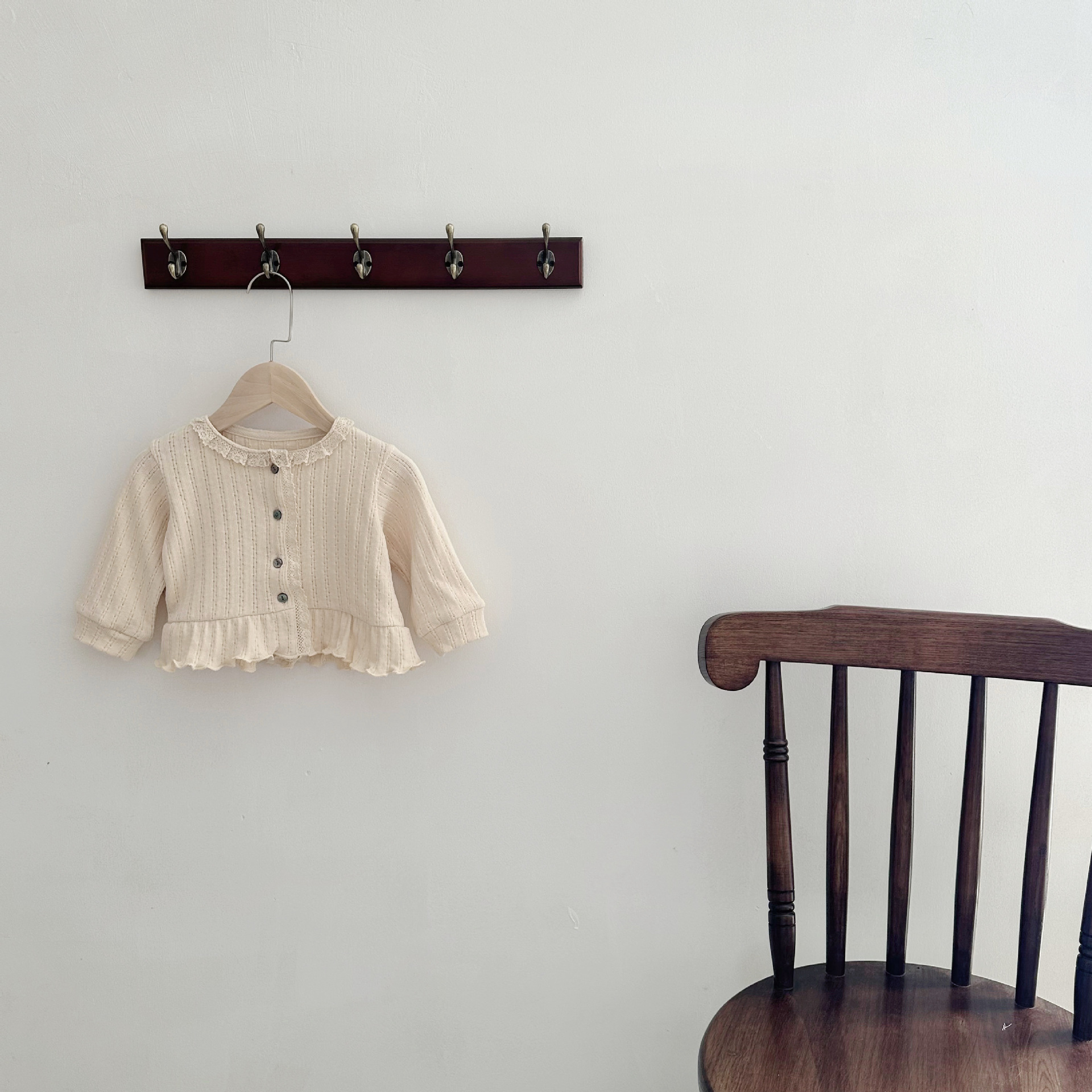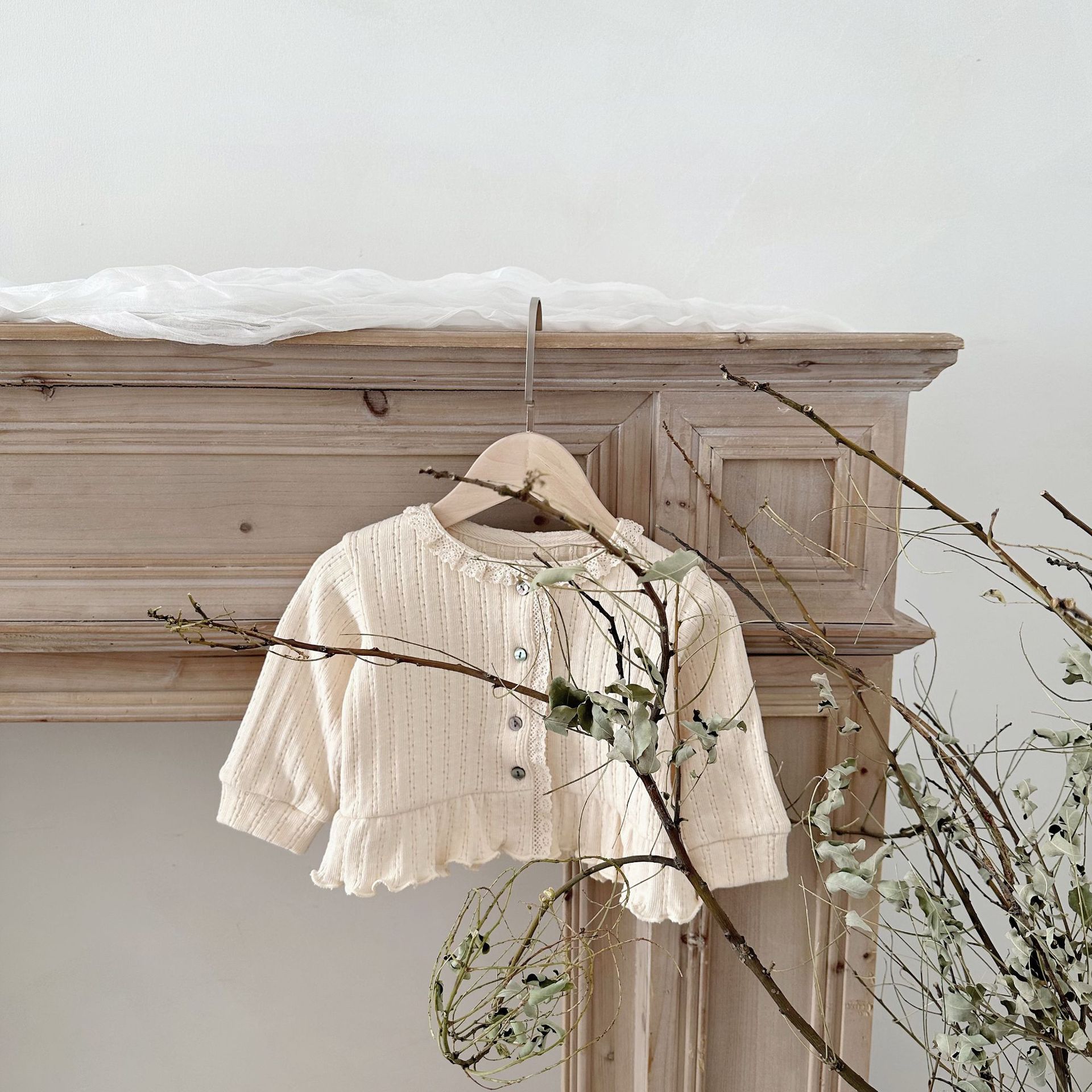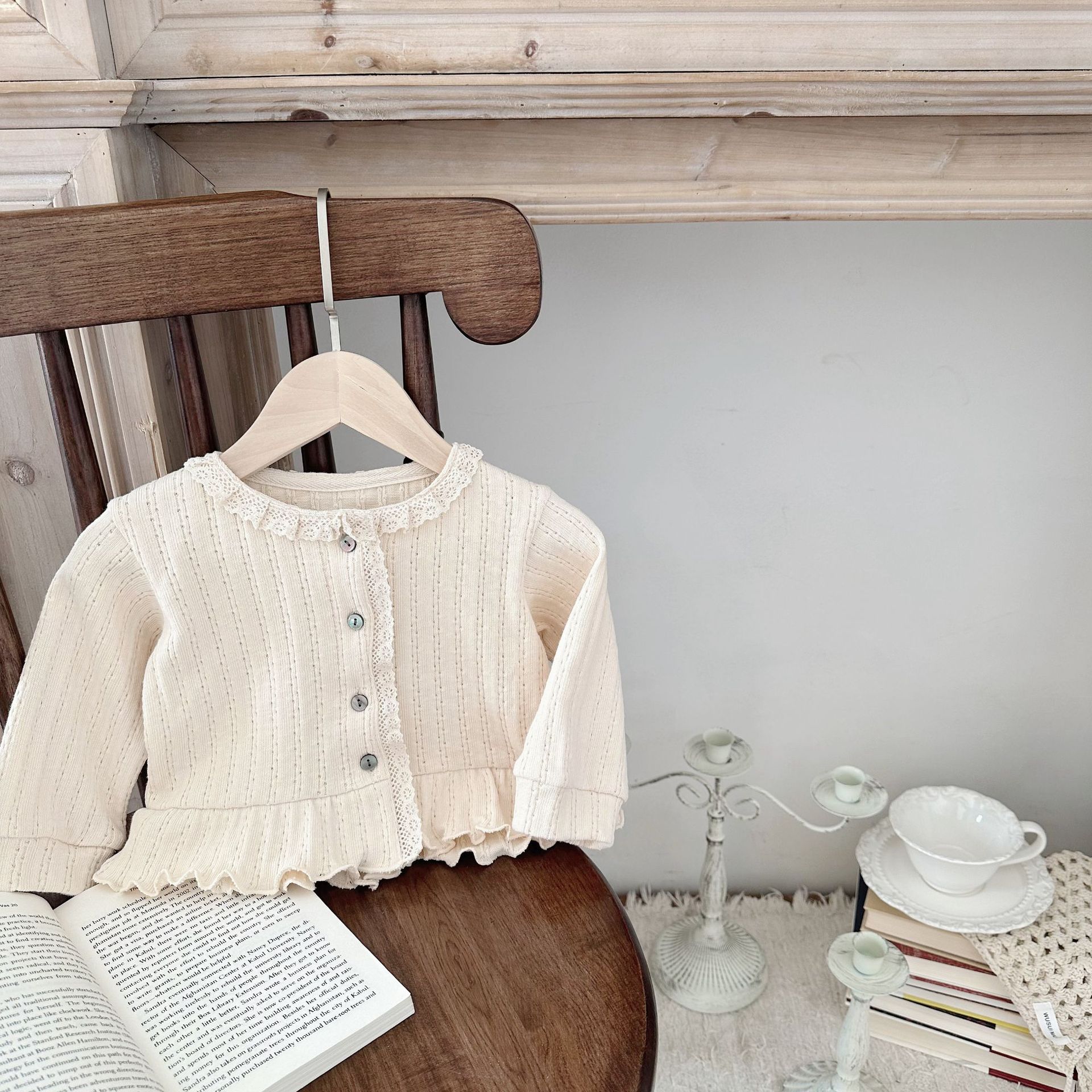 INS 스타일 아기 봄과 가을 레이스 둥근 목 긴 소매 카디건 아기 소녀 간단한 싱글 브레스트 feibian 코트스토어 가기