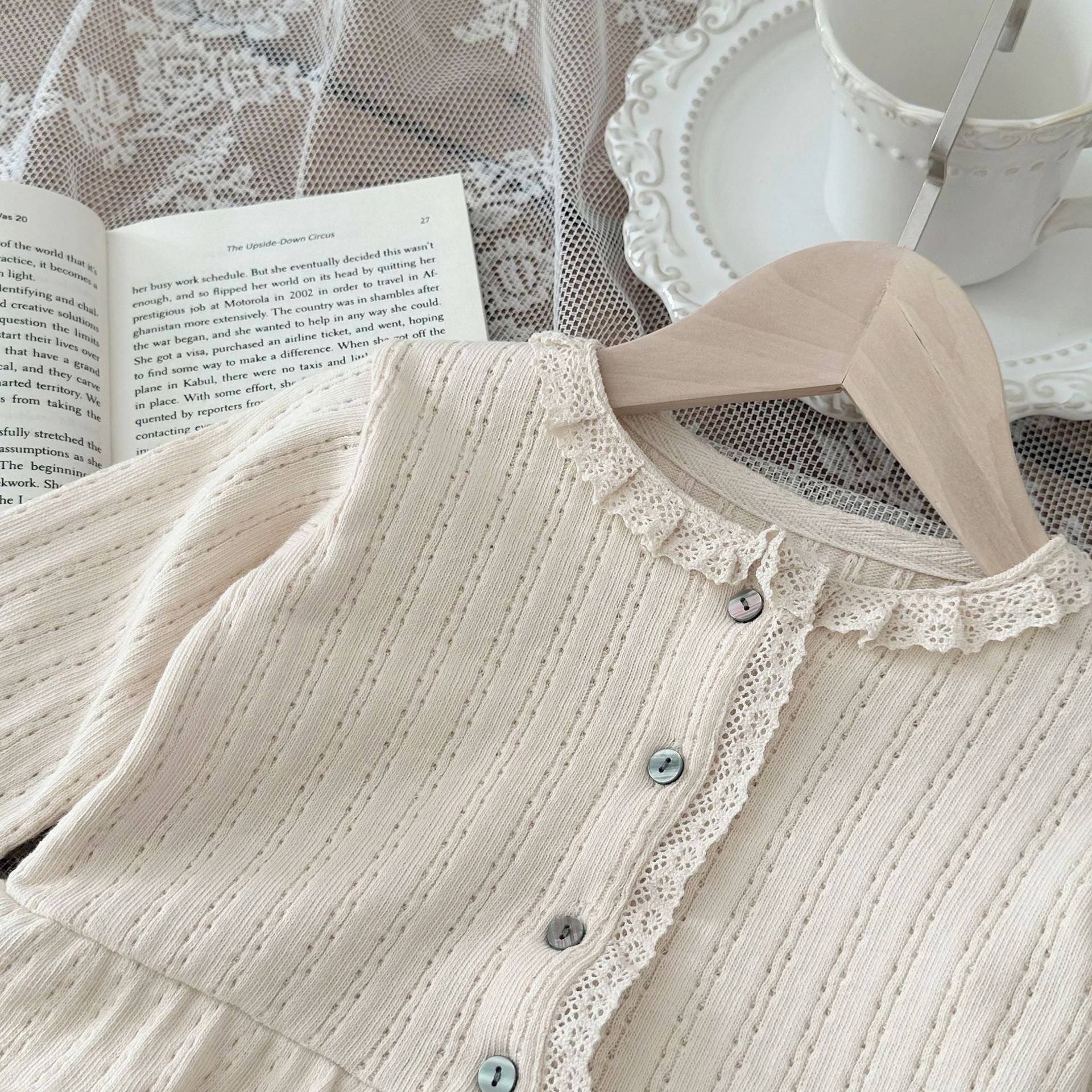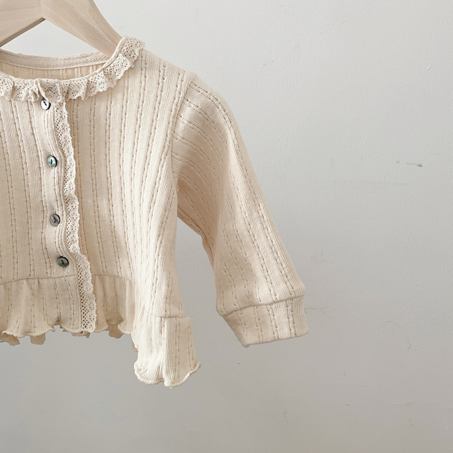 • 베이지 레이스 둥근 목 긴 소매 Feier 카디건