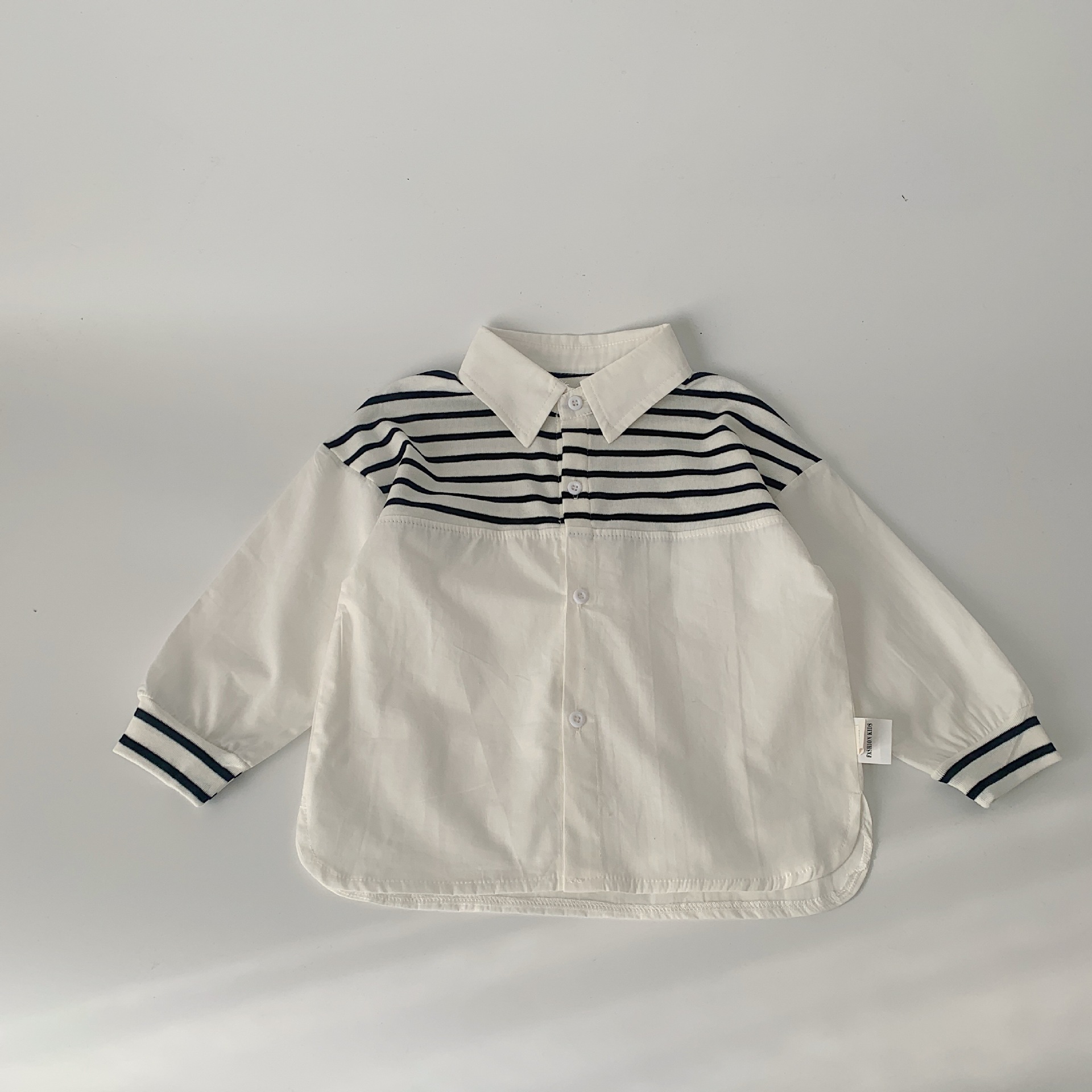맞춤형 아동복 줄무늬 셔츠 2024 봄 새로운 스타일 소년과 소녀 스플 라이스 카디건 베이비 탑 유행스토어 가기