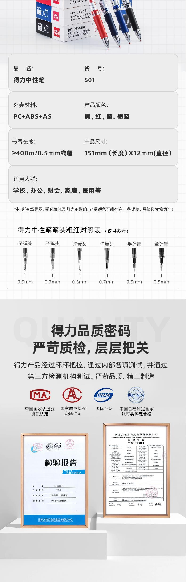 델리 S01 프레스 젤 펜 0.5mm 총알 펜 비즈니스 사무실 사인 펜 학생 쓰기 펜 도매