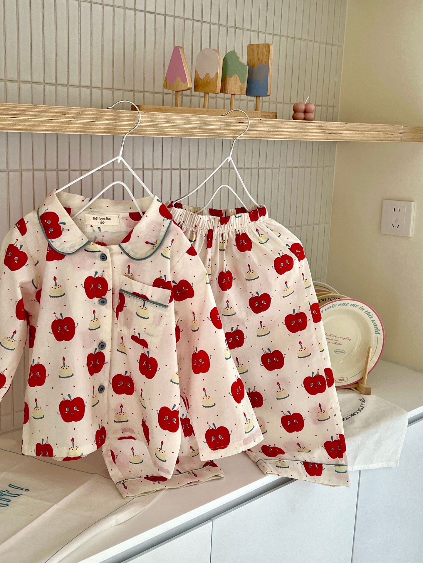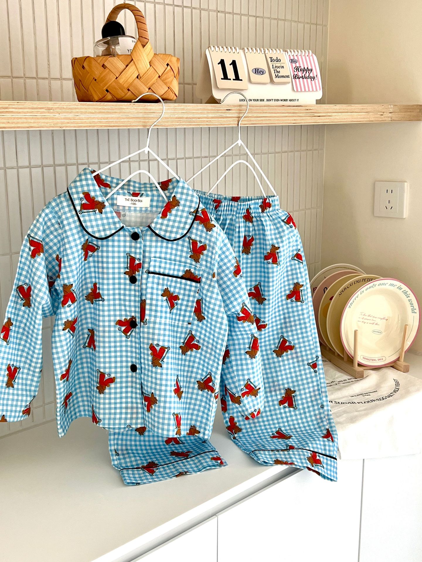 Wheatfield 시즌 2024 봄과 가을 새로운 어린이 면화 만화 가정 의류 세트 소년과 소녀 잠옷 아기 세트스토어 가기