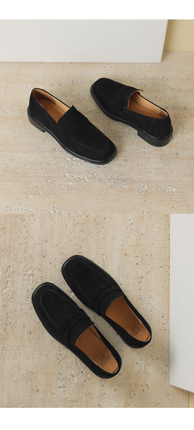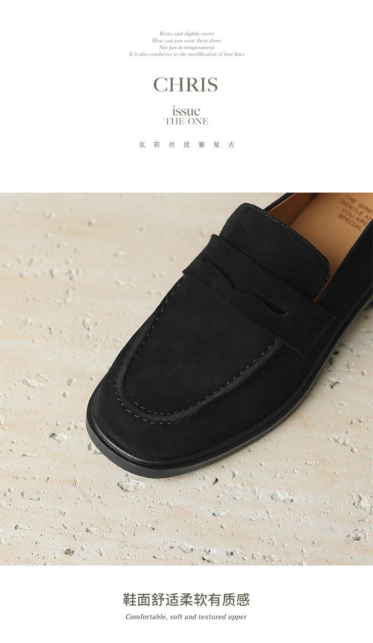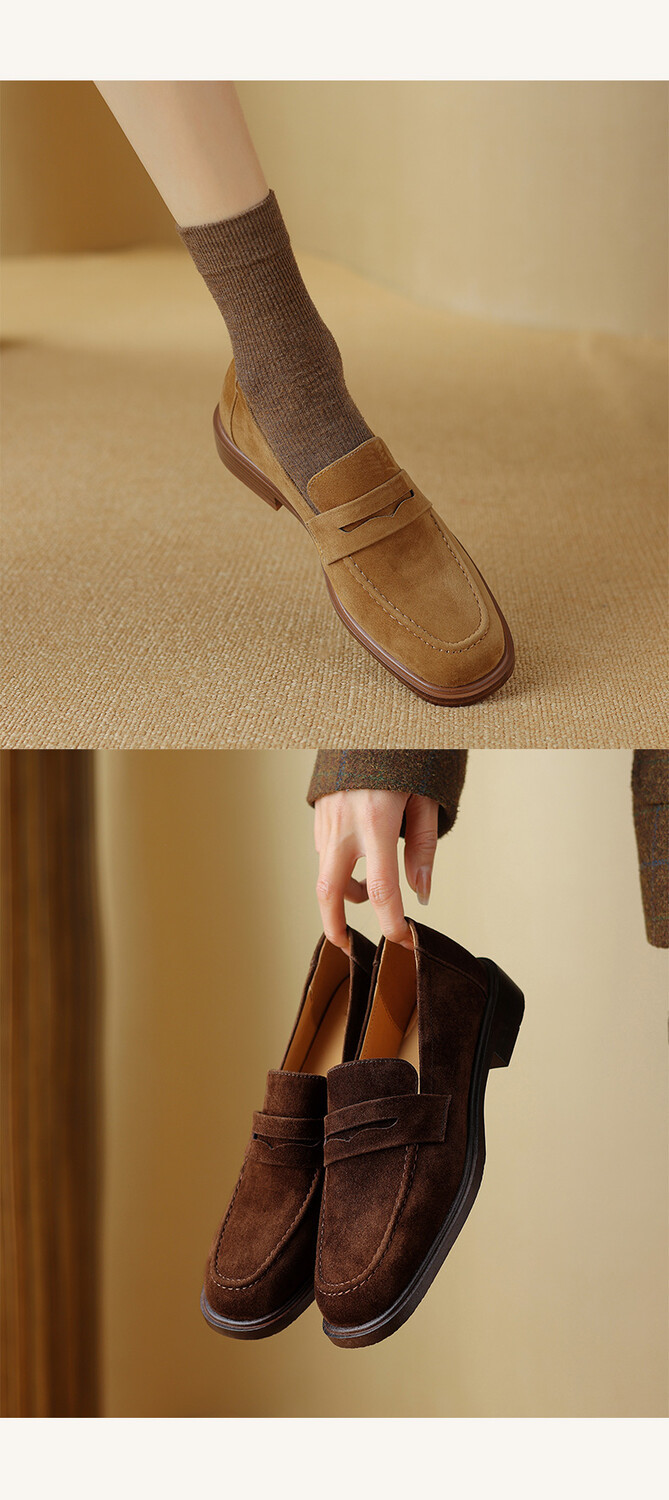 다크 브라운 로퍼 여성 뉴 2023 가을 및 겨울 양가죽 사각 발가락 청키 힐 미드 힐 레트로 라운드 토 영국 스타일 싱글 레이어 신발스토어 가기