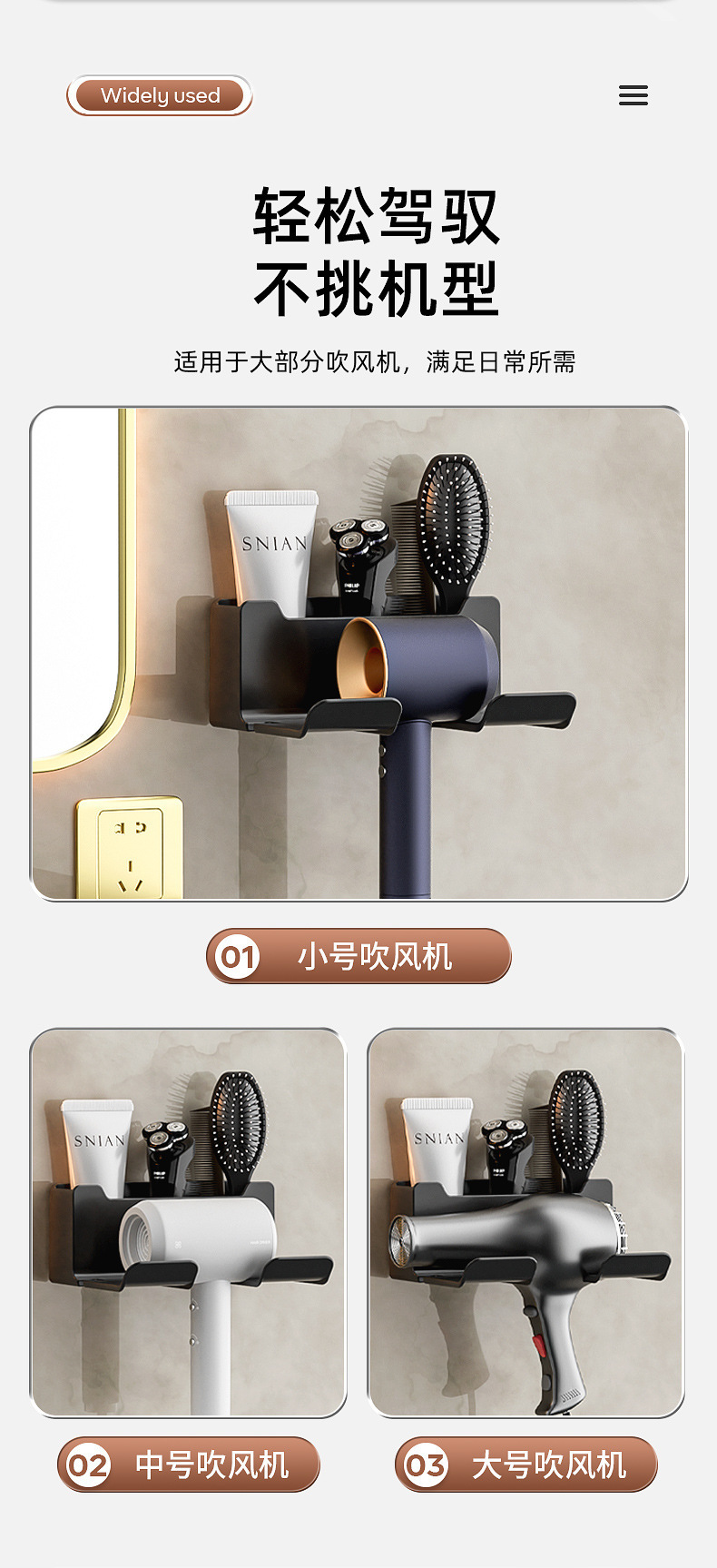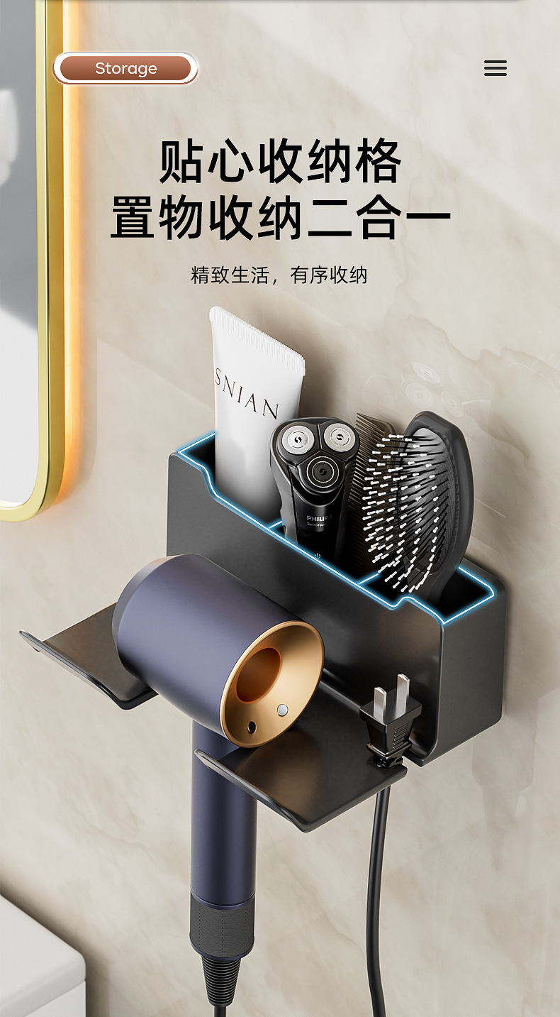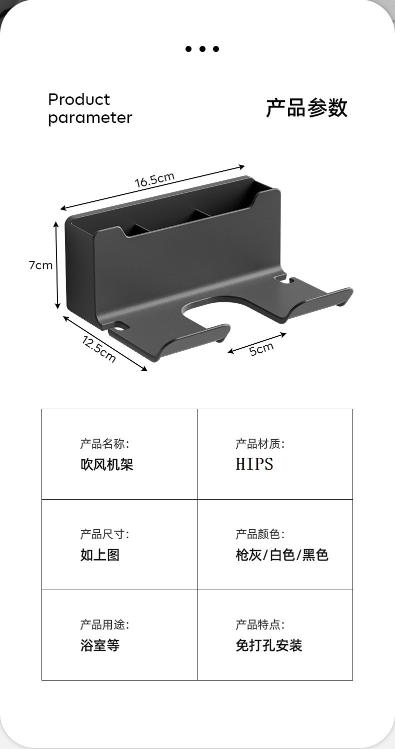 헤어 드라이어 스토리지 랙 펀치 프리 화장실 드릴 스토리지 브래킷 욕실 벽걸이 헤어 드라이어 랙