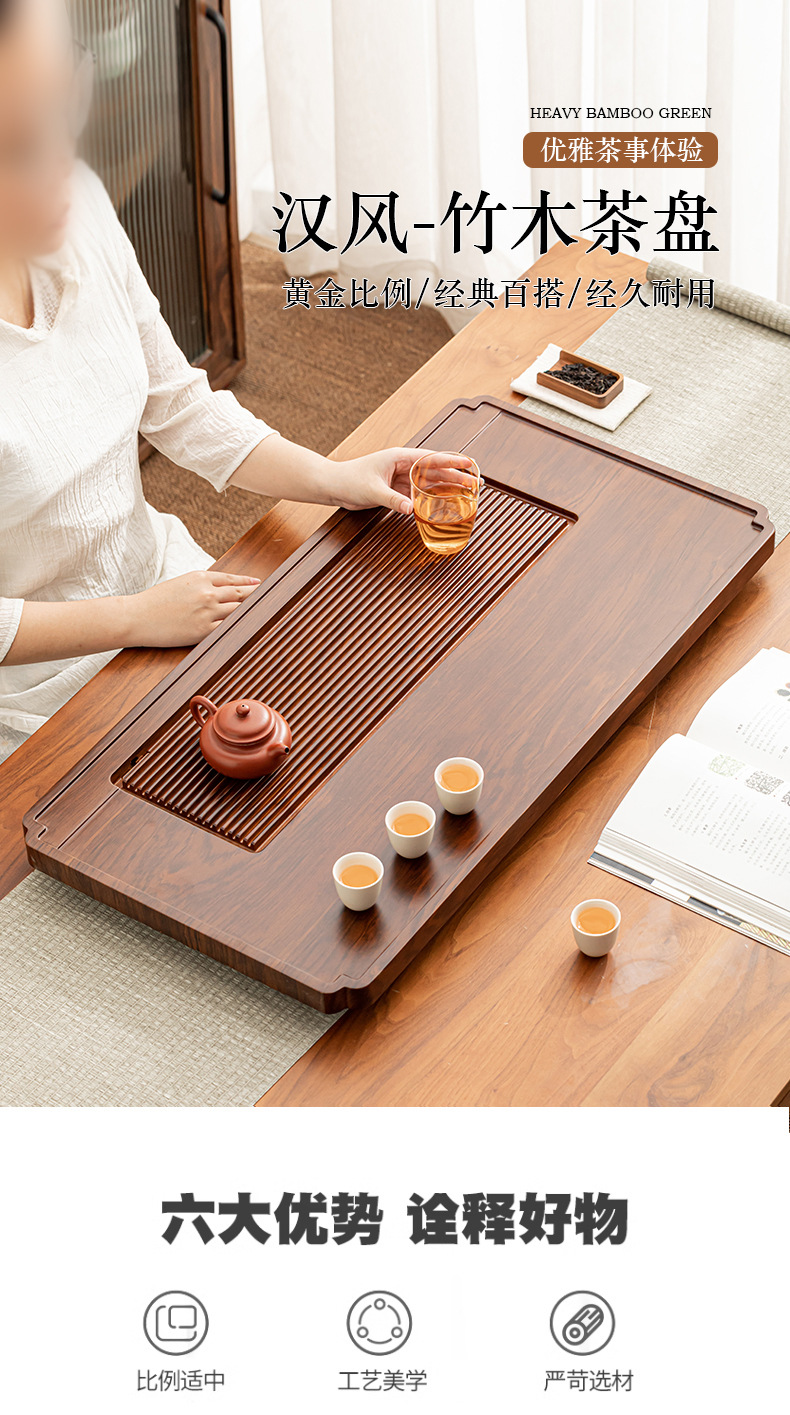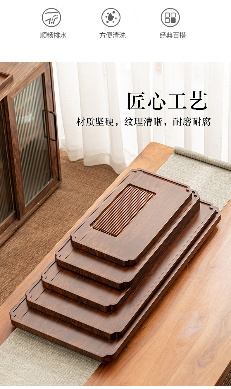 새로운 차 세트 전체 차 트레이 베이클라이트 통합 배수 단단한 나무 차 트레이 가정용 차 테이블 사무실 차 바다 차