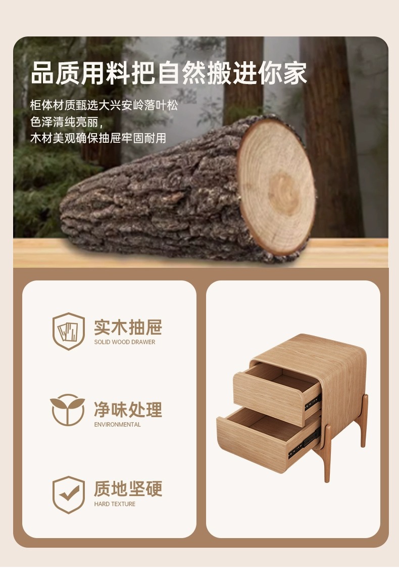 단단한 나무 침대 옆 탁자 2024 새로운 설치 무료 침대 옆 캐비닛 침실 간단한 가벼운 고급 고급 더블 레이어 사물함