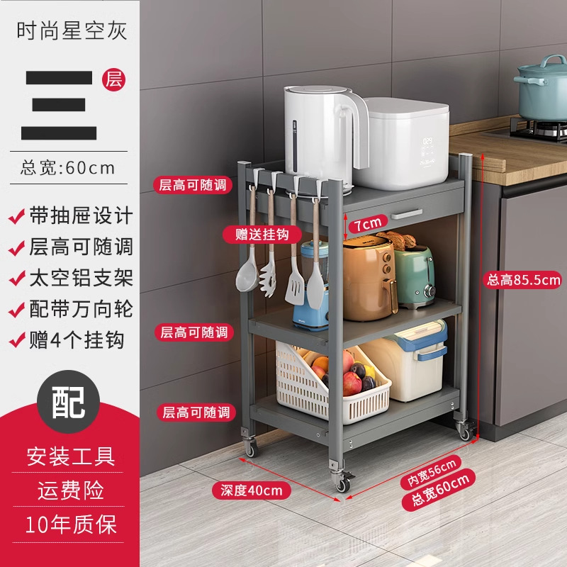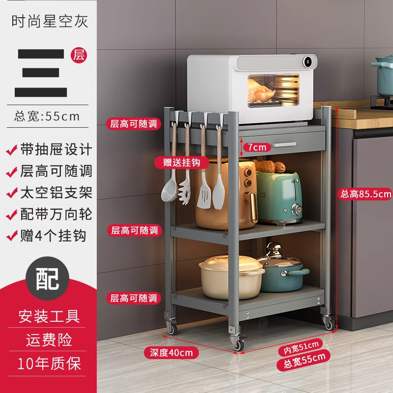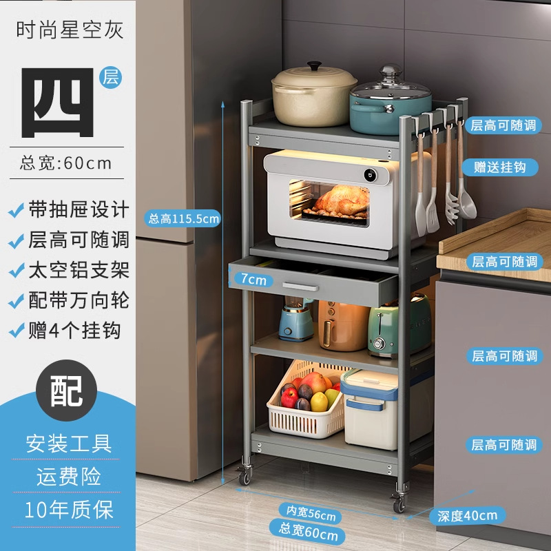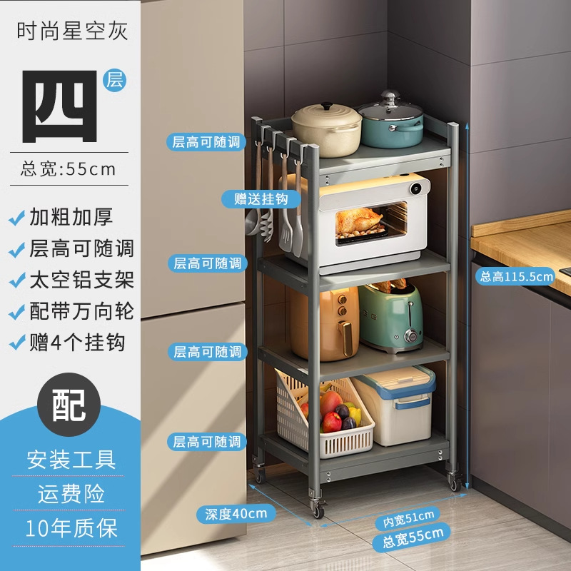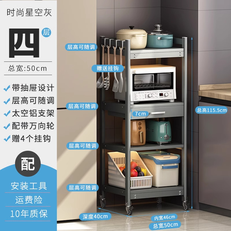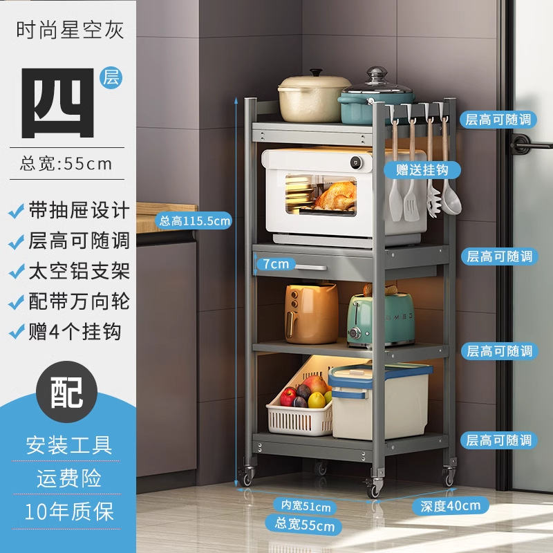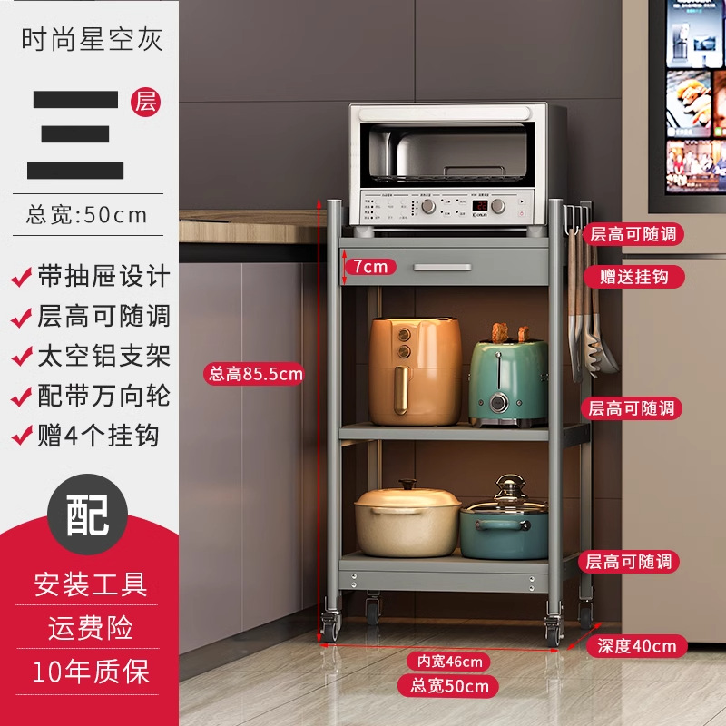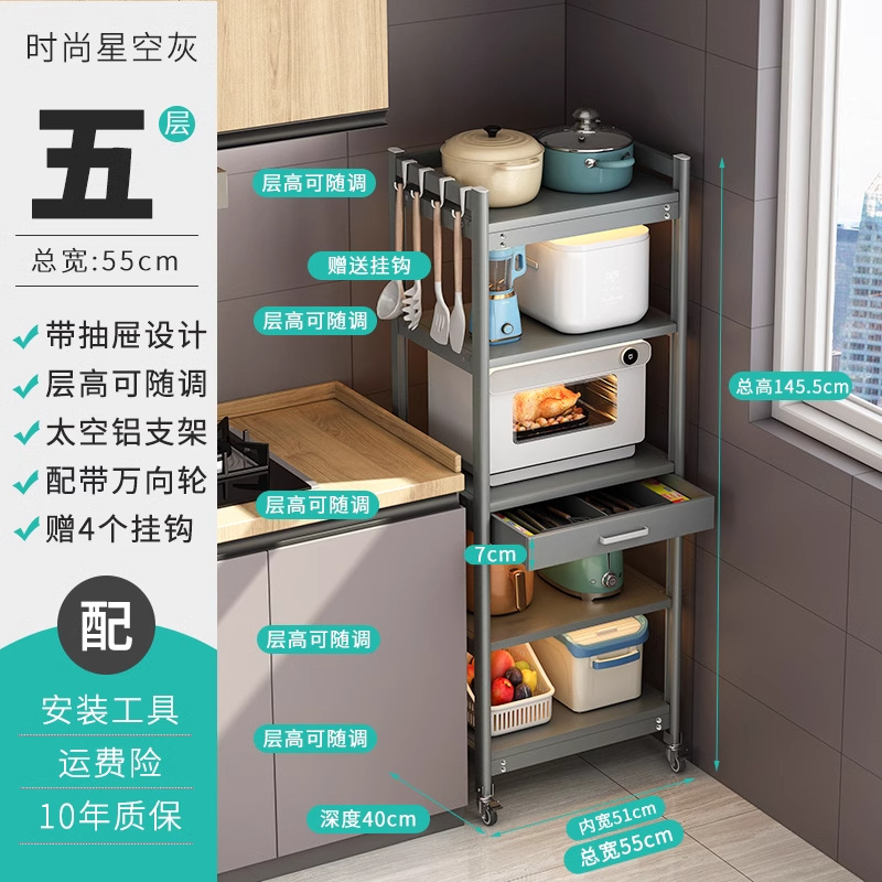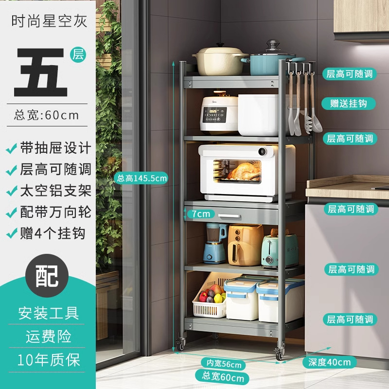 공간 알루미늄 주방 전자 레인지 보관 선반 바닥 다층 가정용 다기능 오븐 기기 보관함스토어 가기