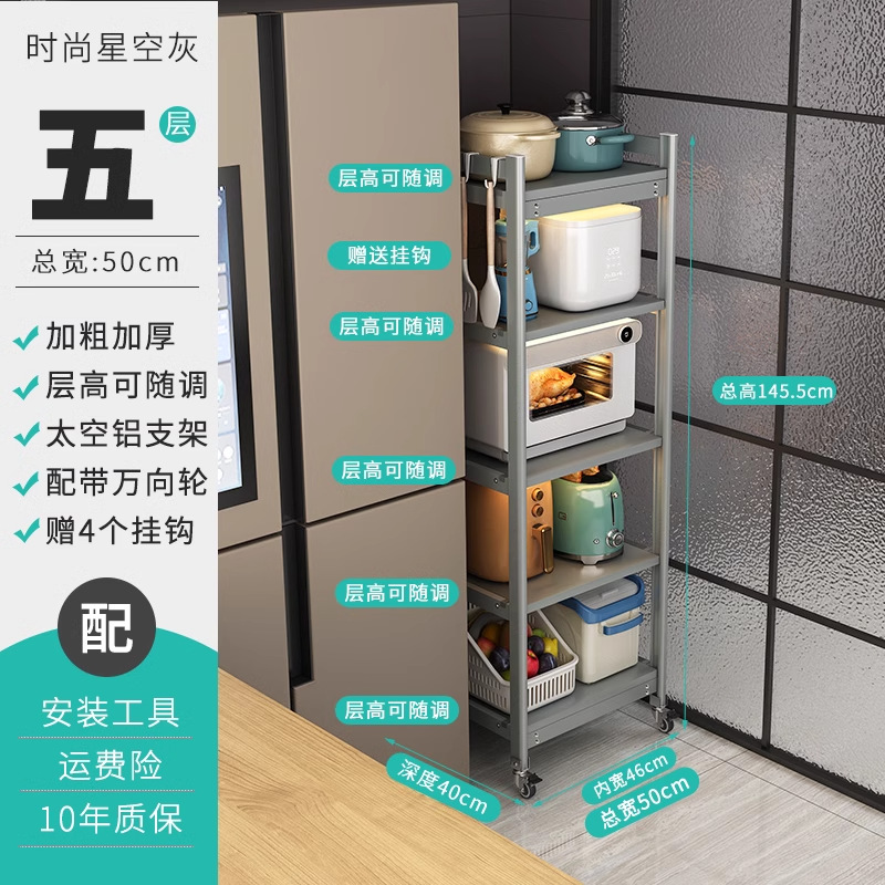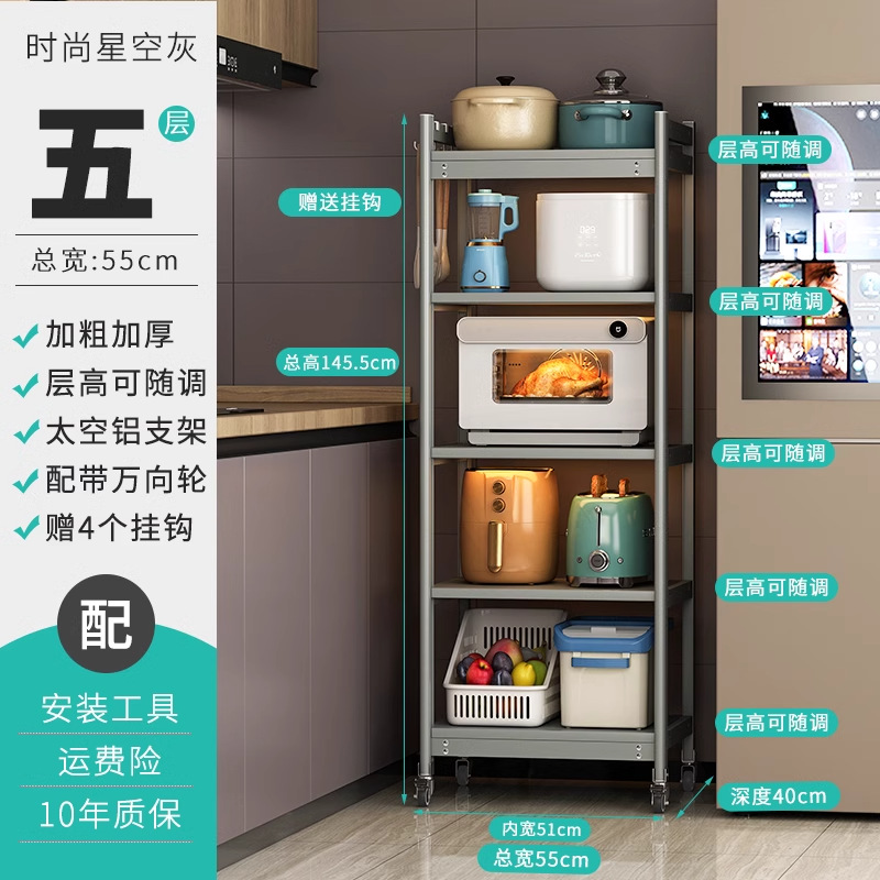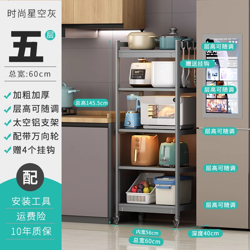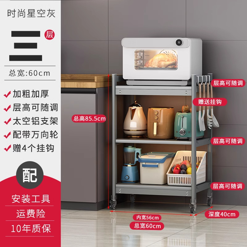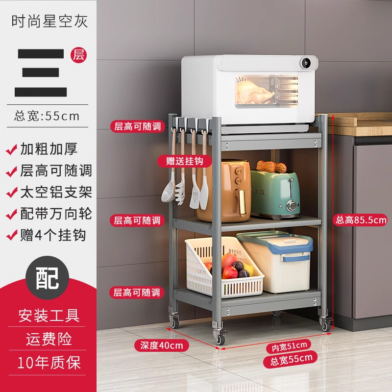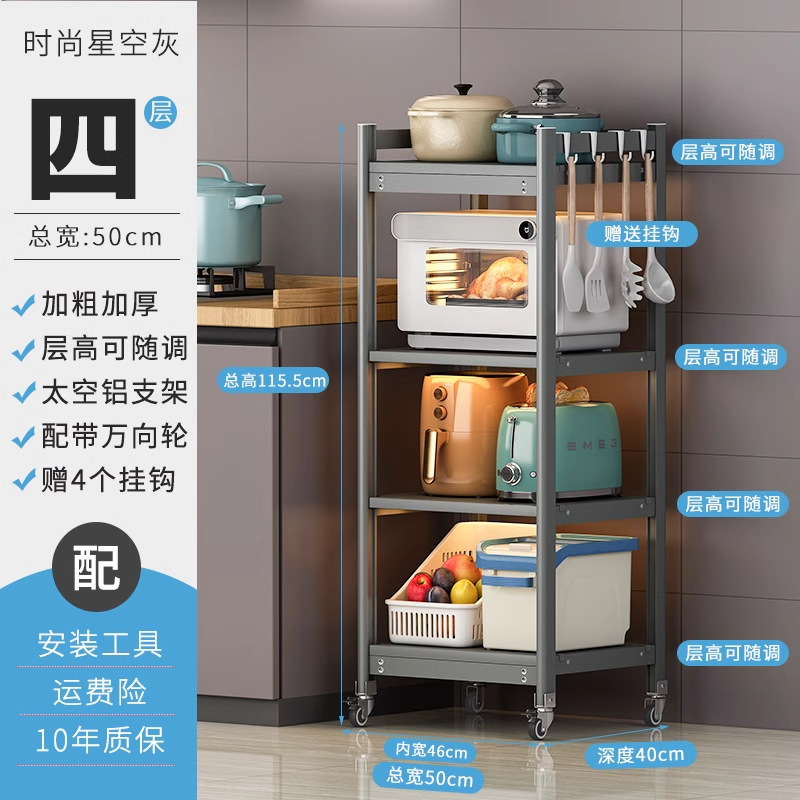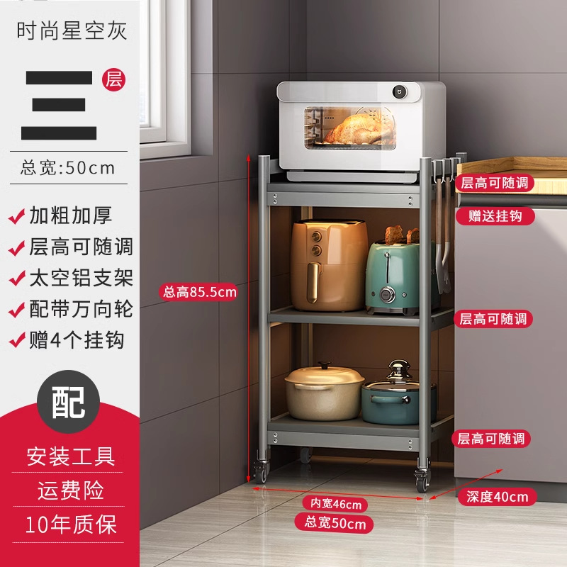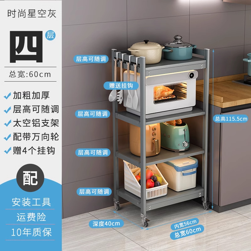 공간 알루미늄 주방 전자 레인지 보관 선반 바닥 다층 가정용 다기능 오븐 기기 보관함