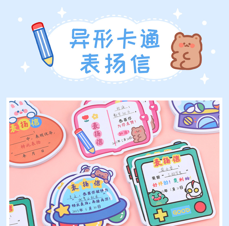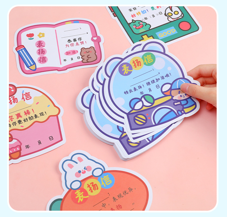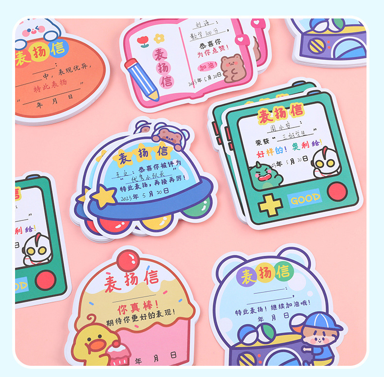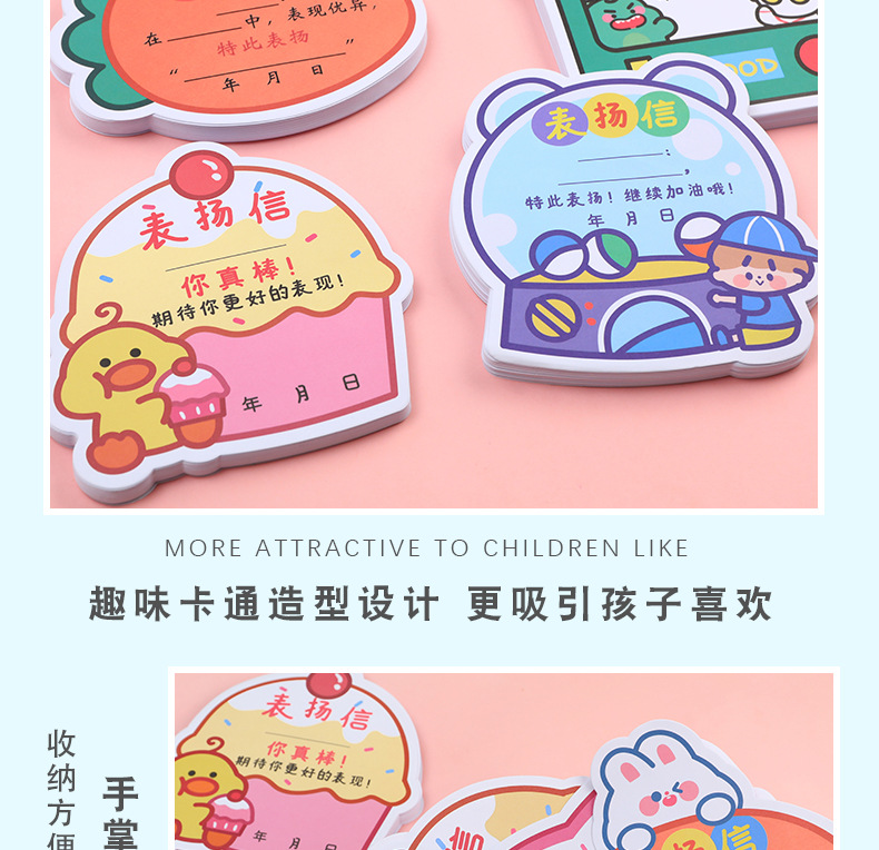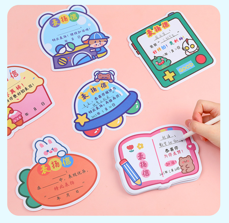 만화 귀여운 신용 편지 아이들의 창조적 인 재미있는 칭찬 작은 상 세 명의 좋은 학생 어린이 특별한 모양의 보상 문구스토어 가기