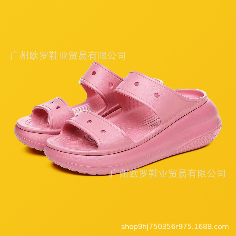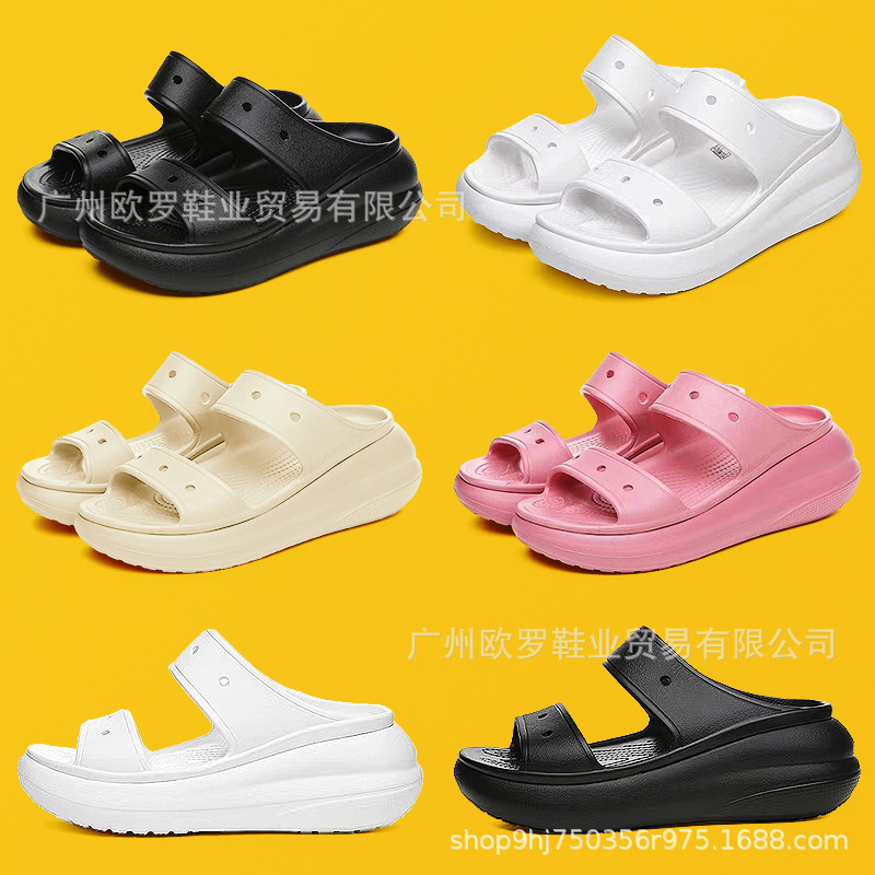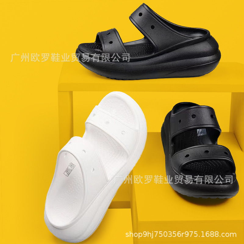 크로스 퍼프 더블 스트랩 홀 신발 여성의 새로운 여름 두꺼운 밑창 패션 캐주얼 닫힌 발가락 샌들 비치 슈즈 도매