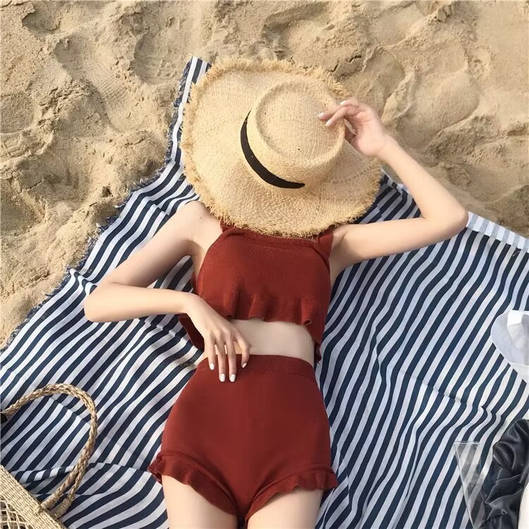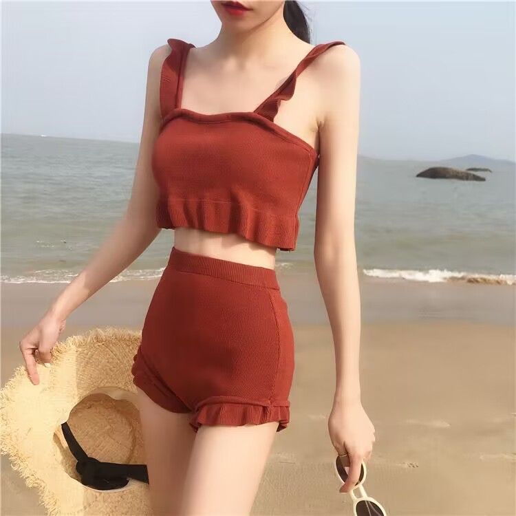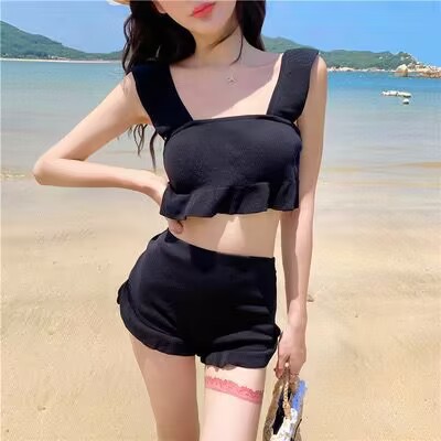 한국 여성용 단색 분리형 수영복, 한국 패션 신상품, 배를 가려주는 하이웨이스트 투피스 휴가용 수영복, 해외 수입 수영복스토어 가기