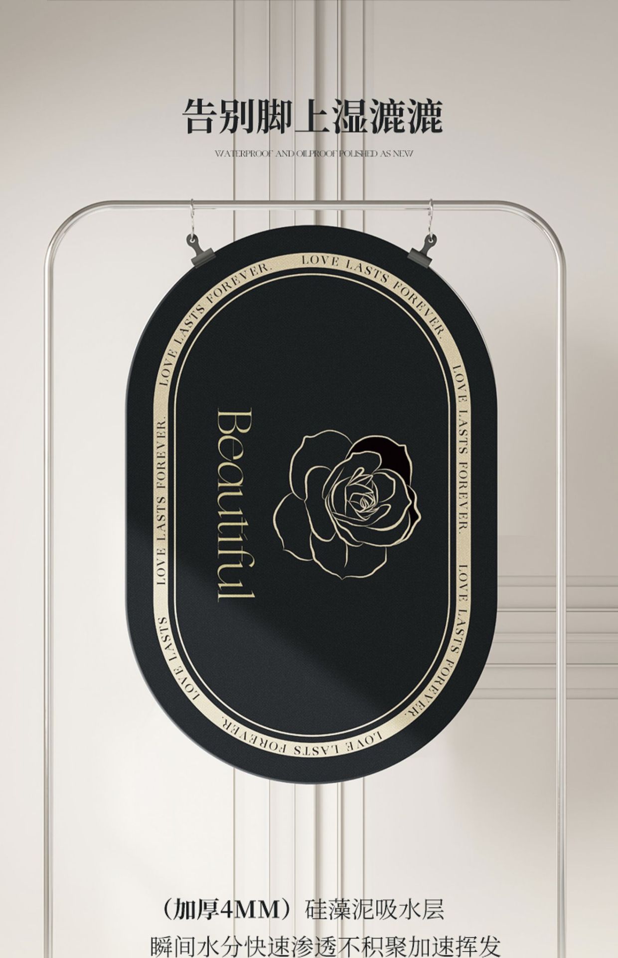 현대 가벼운 고급 검은 장미 욕실 부드러운 diatom 진흙 흡수성 바닥 매트 빠른 건조 욕실 문 미끄럼 방지 바닥 매트가 두껍게