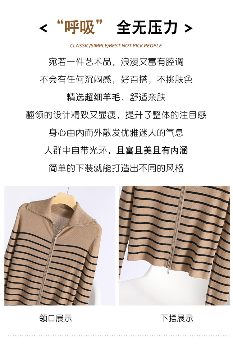 초정밀 소프트 왁스 울 더블 지퍼 옷깃 줄무늬 니트 카디건 탑 우아한 올 매치 슬림 핏 재킷 스웨터스토어 가기
