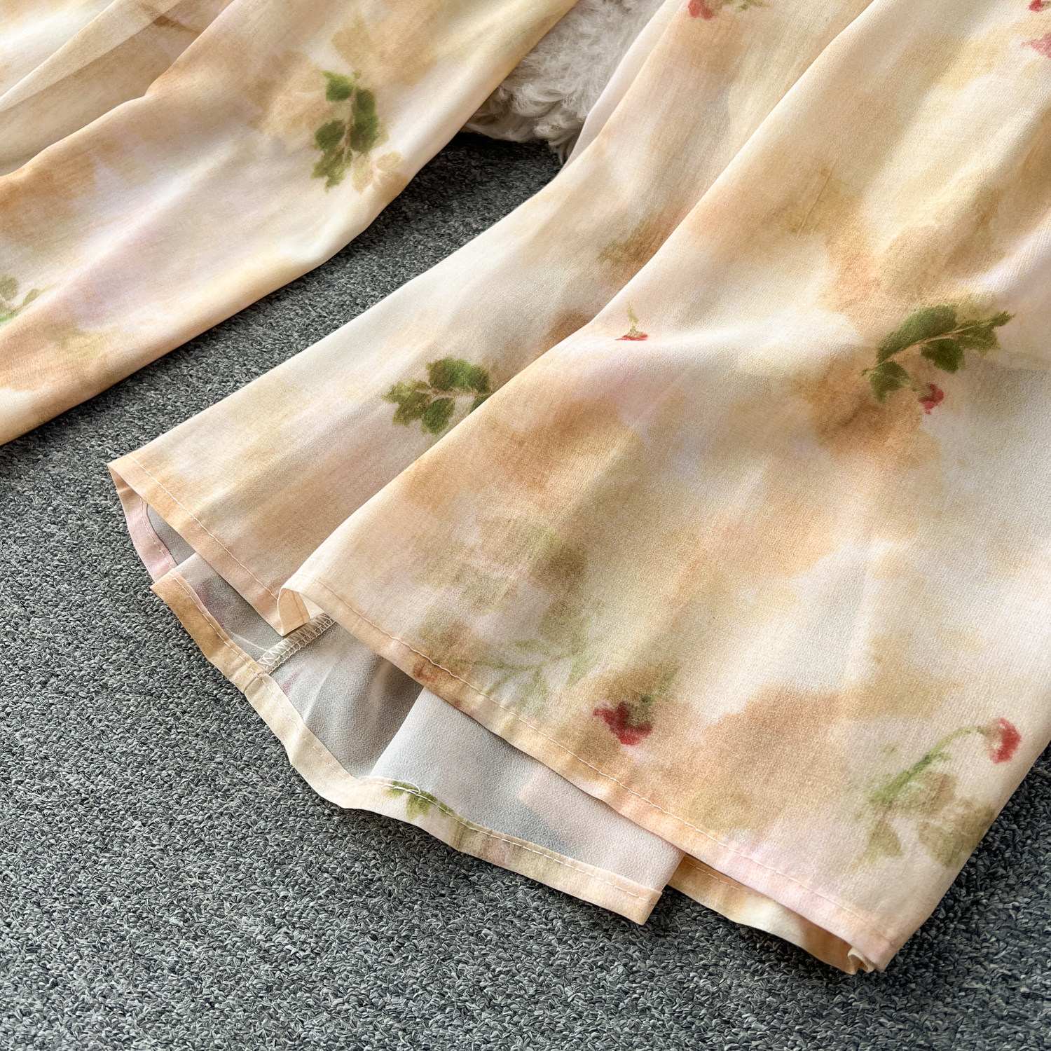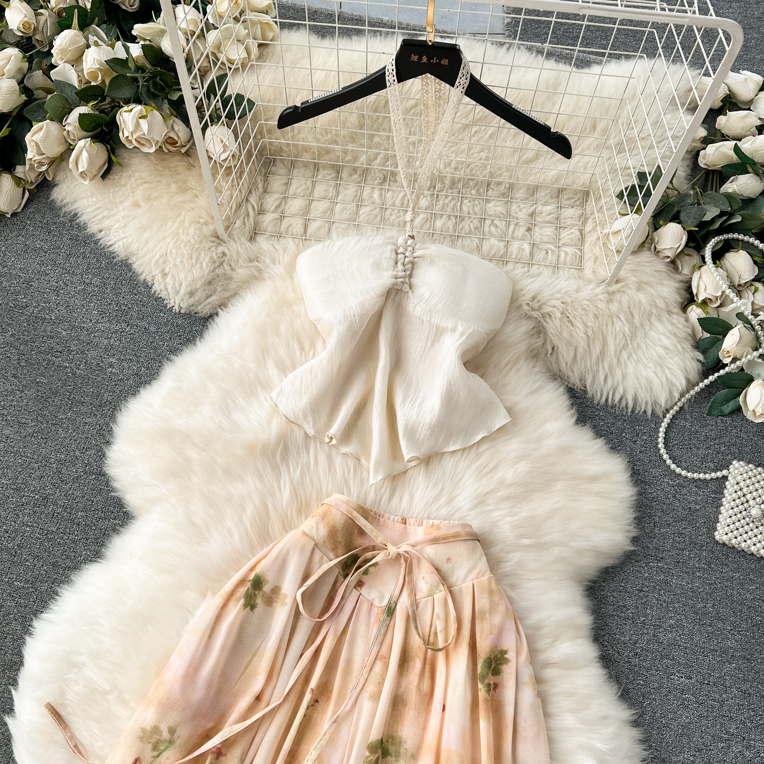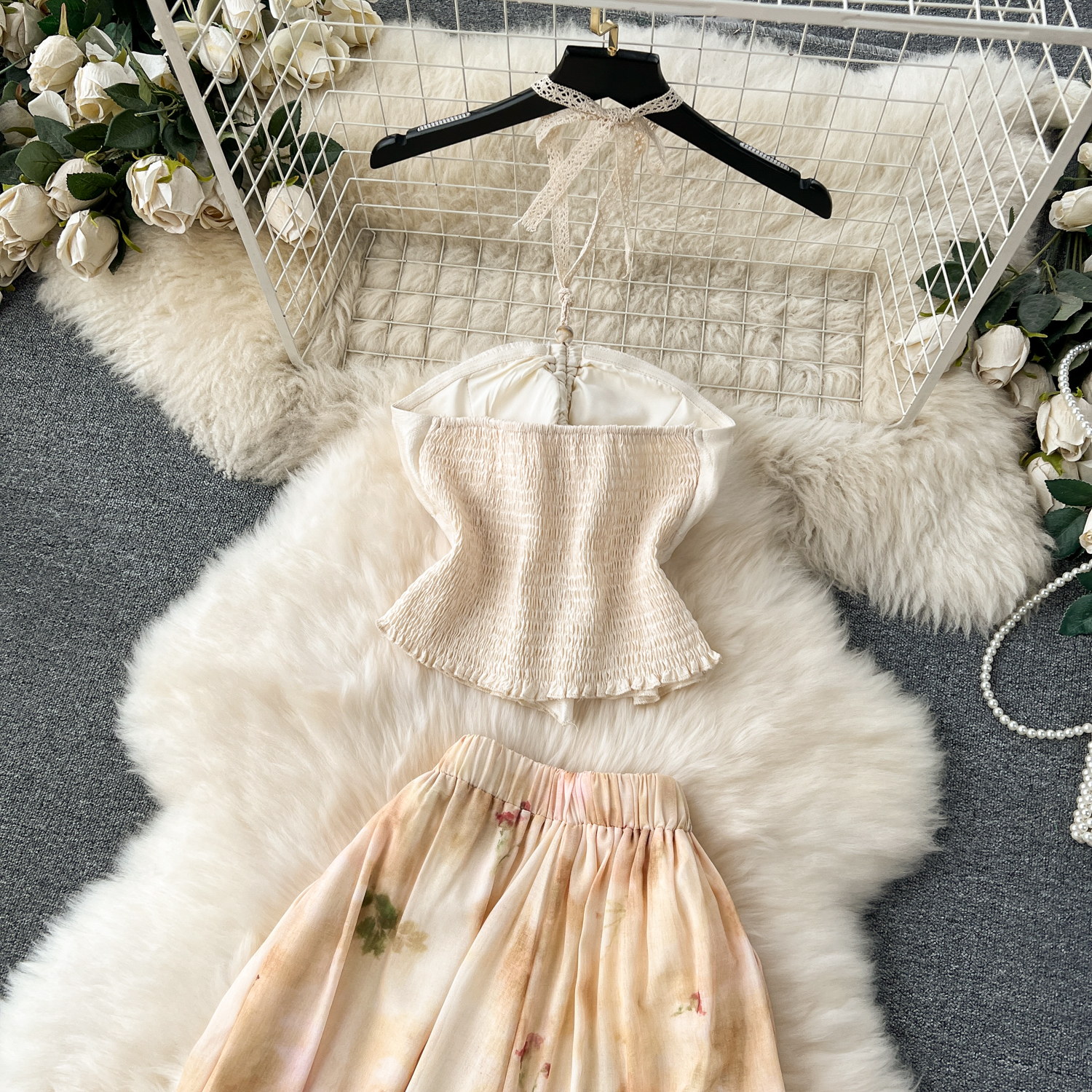 여행 샷 휴가 착용 연령 감소 목 튜브 탑 올 매치 복고풍 인쇄 와이드 레그 바지 유행 투피스 세트 패션스토어 가기