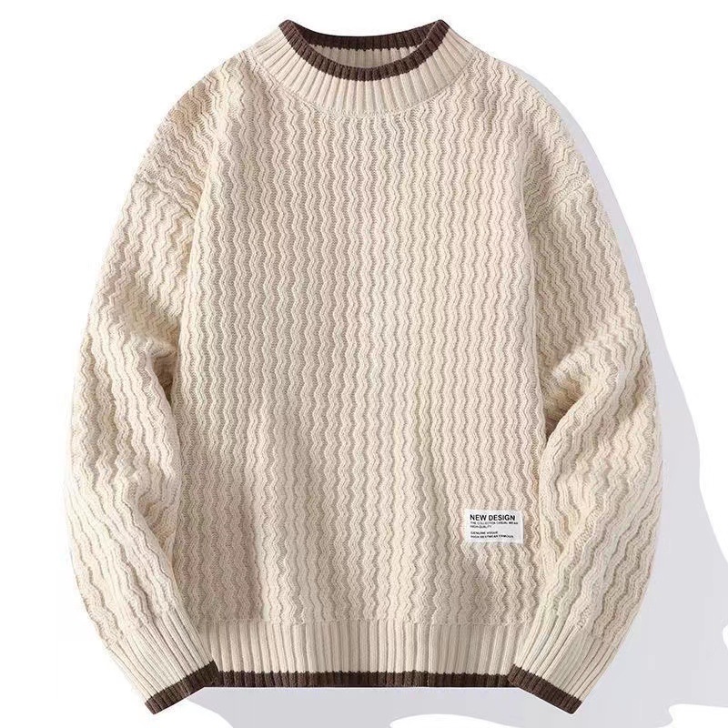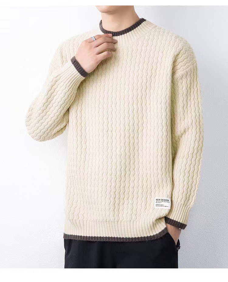 라운드넥 스웨터 남성용 가을 겨울 수제 니트 이너웨어 청소년 트렌디 페이크 투피스 남성복 도매 긴팔 신축성