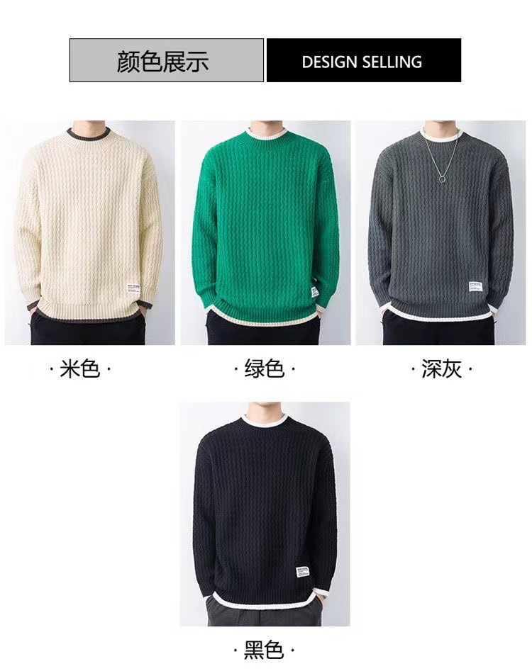 라운드넥 스웨터 남성용 가을 겨울 수제 니트 이너웨어 청소년 트렌디 페이크 투피스 남성복 도매 긴팔 신축성스토어 가기