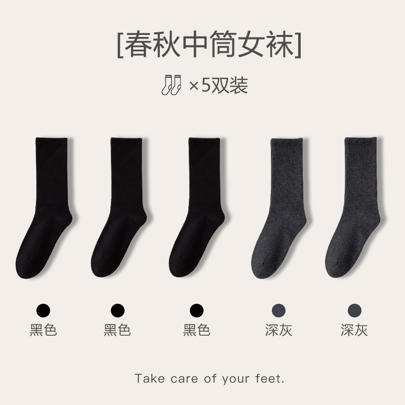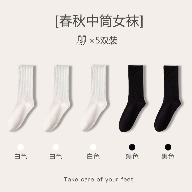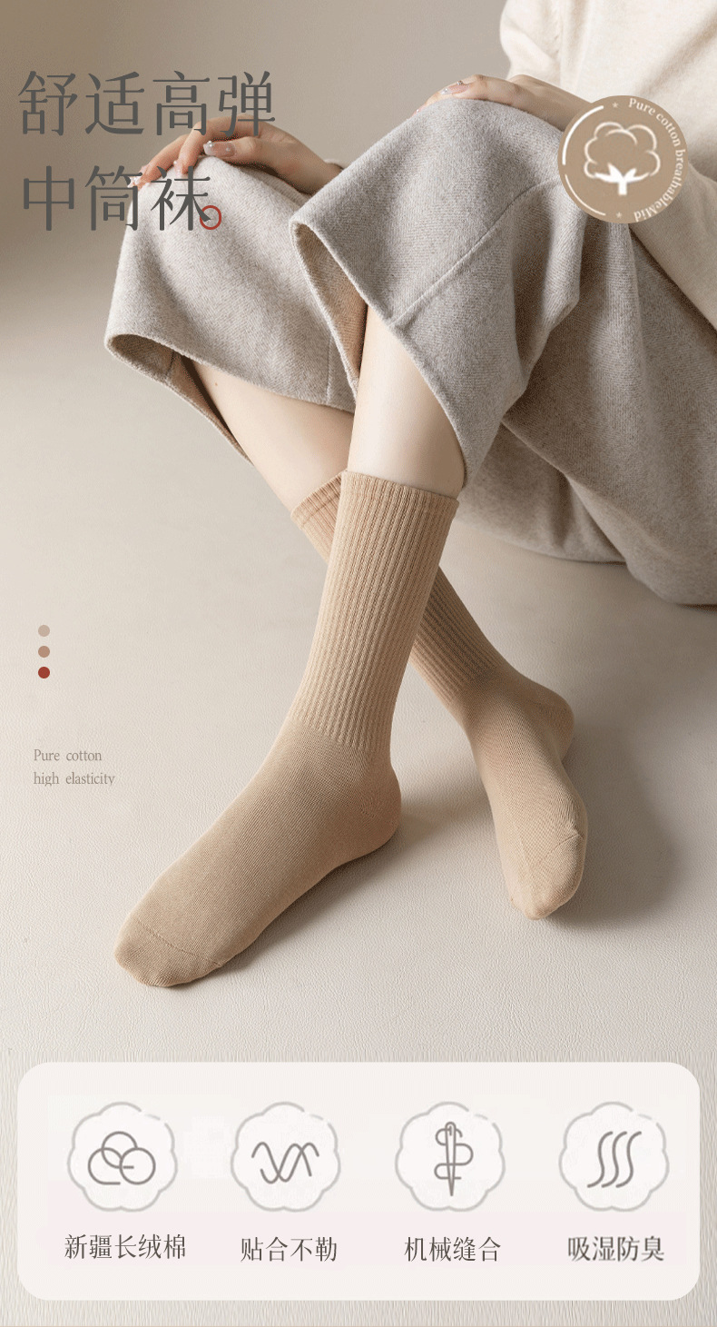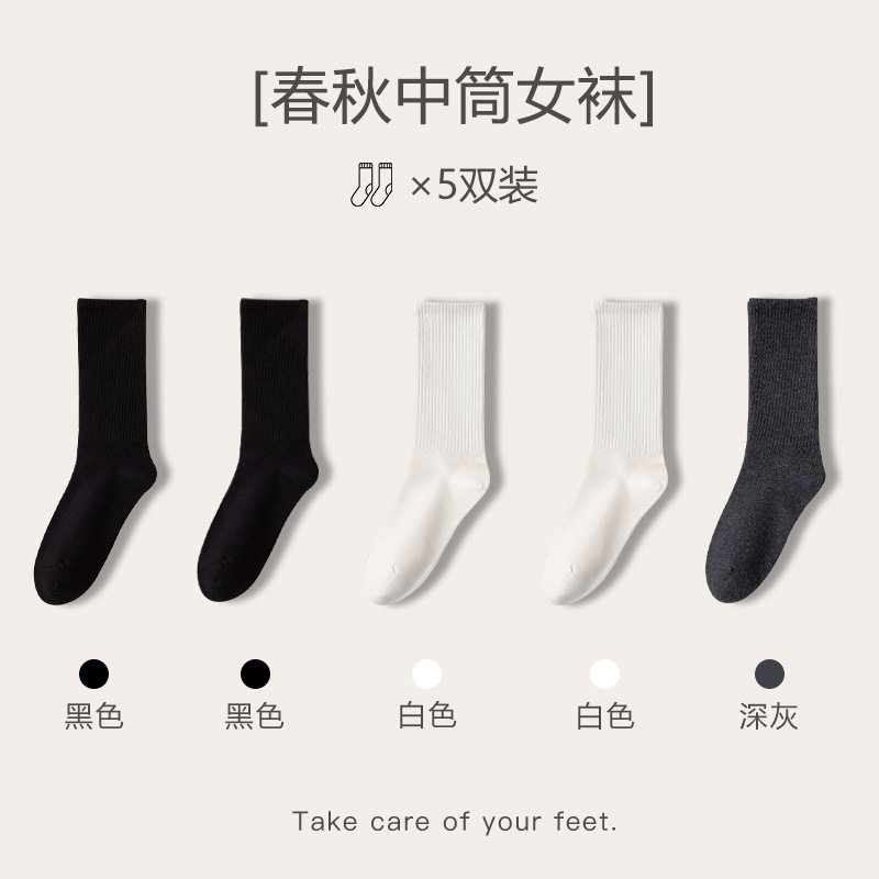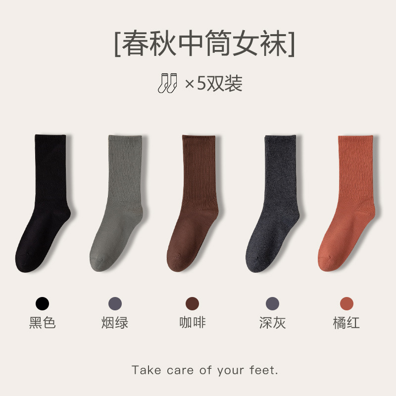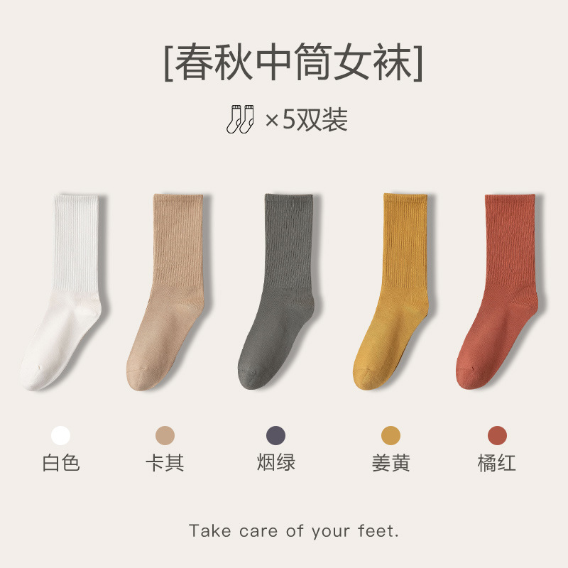 양말 여성의 봄과 가을 중간 길이 양말 여성용 긴 배럴 스택 양말 솔리드 컬러 일본 스타일 패션 올 매치 대학 스타일 코튼 양말