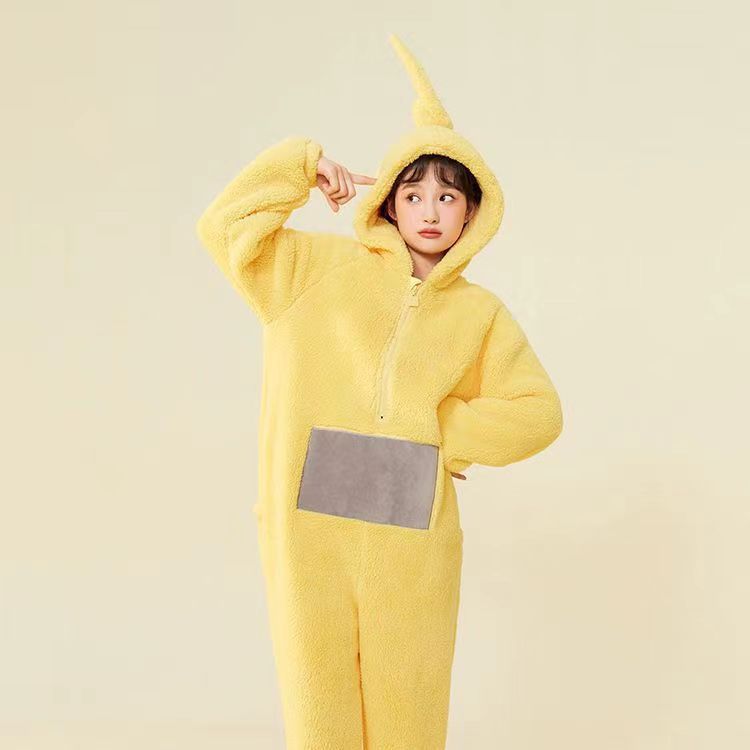 Teletubbies Siomatic Pajamas 여성의 겨울 귀여운 만화 재미 있은 외부 착용 홈 의류 두꺼운 산호 양털