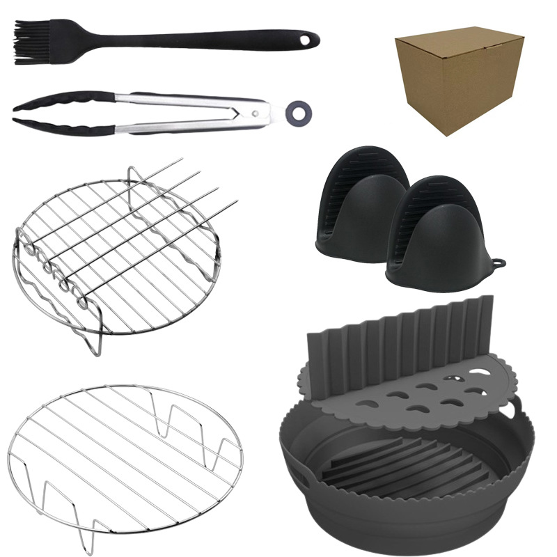 국경 TEMU 뜨거운 판매 공기 프라이어 실리콘 라인 304 스테인레스 스틸 기선 그릴 8 조각 공장 재고