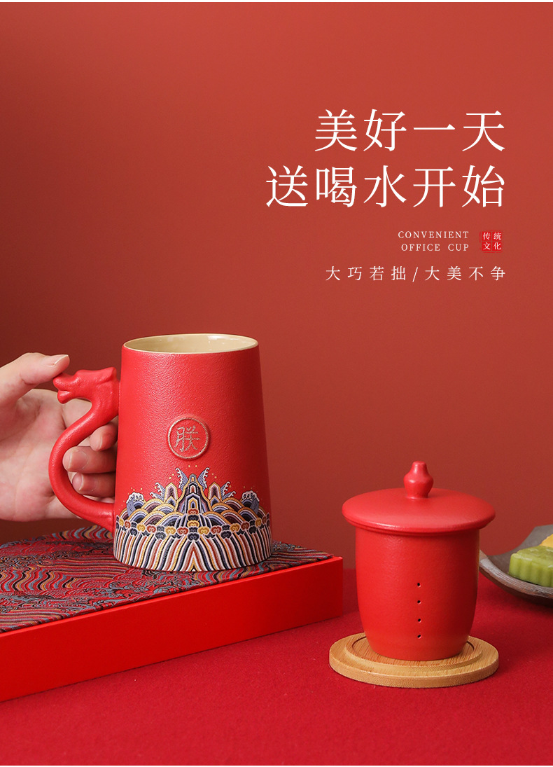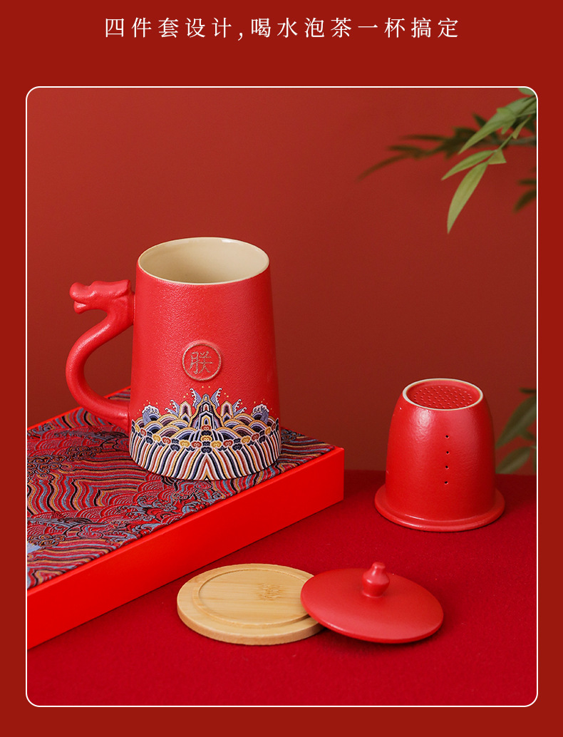 • 드래곤 핸들 오피스 컵(빨간색) 선물 상자