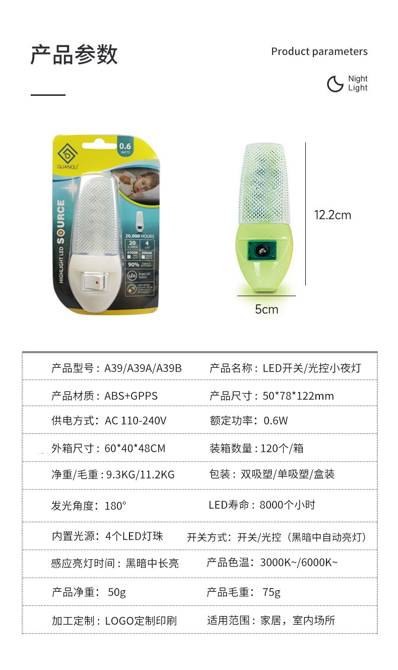 공장 국경 스마트 led 유도 조명 도매 침실 침대 옆 야간 조명 유럽과 미국 영국 표준 조명 제어 야간 조명