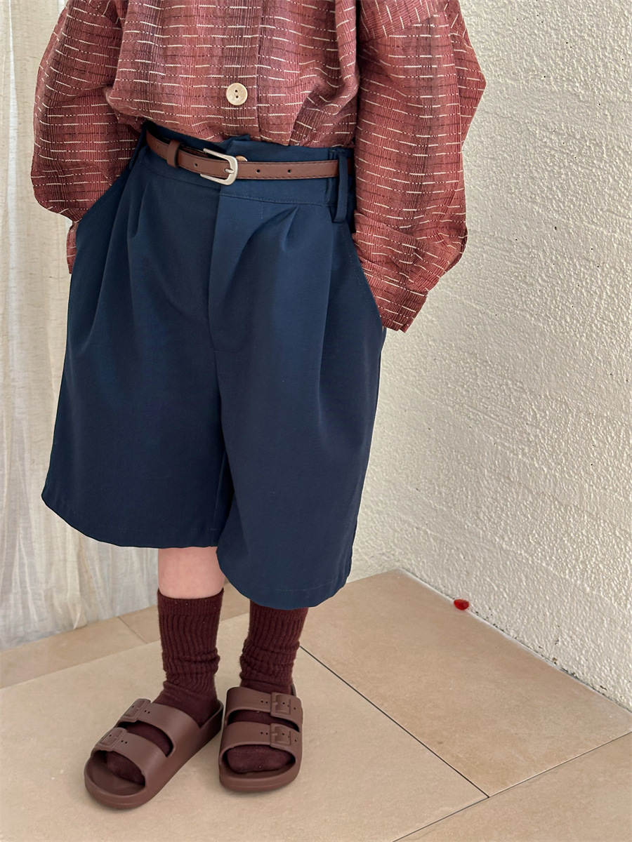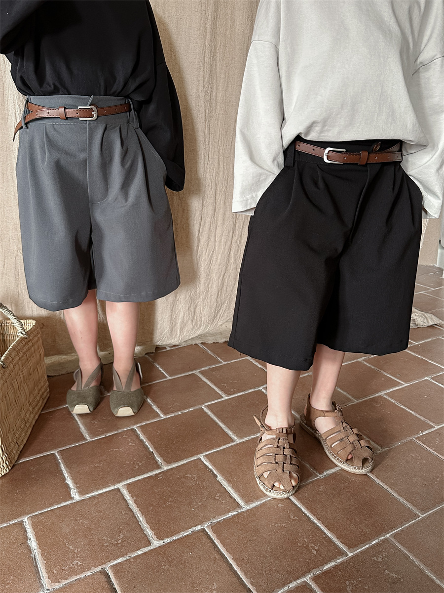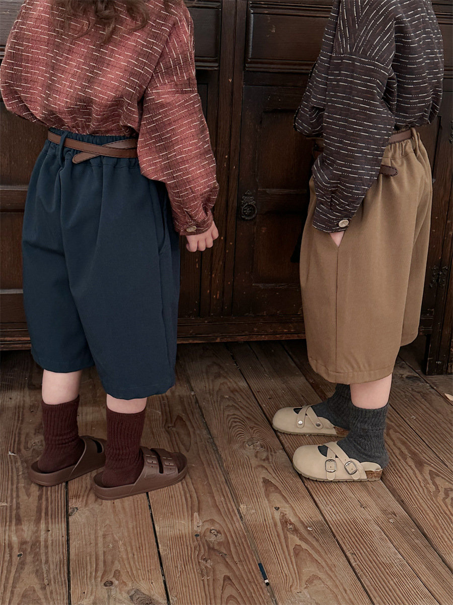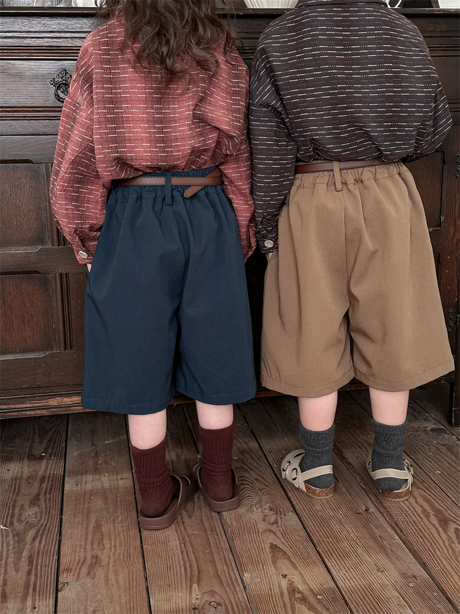 Jiaye 어린이 제품 2025 어린이 봄, 가을 정장 반바지 남성과 여성 아기 숲 스타일 복고풍 중간 바지 5부 바지 무료 벨트