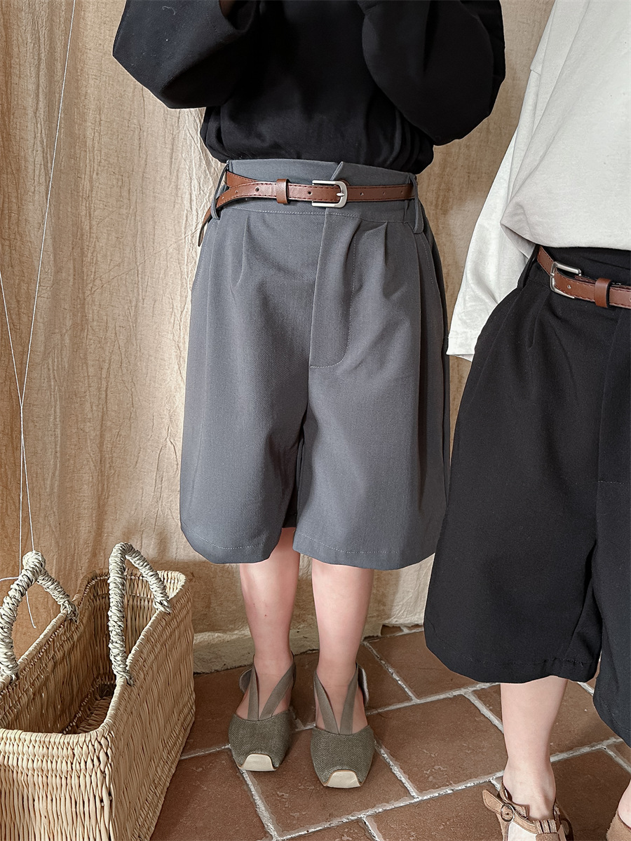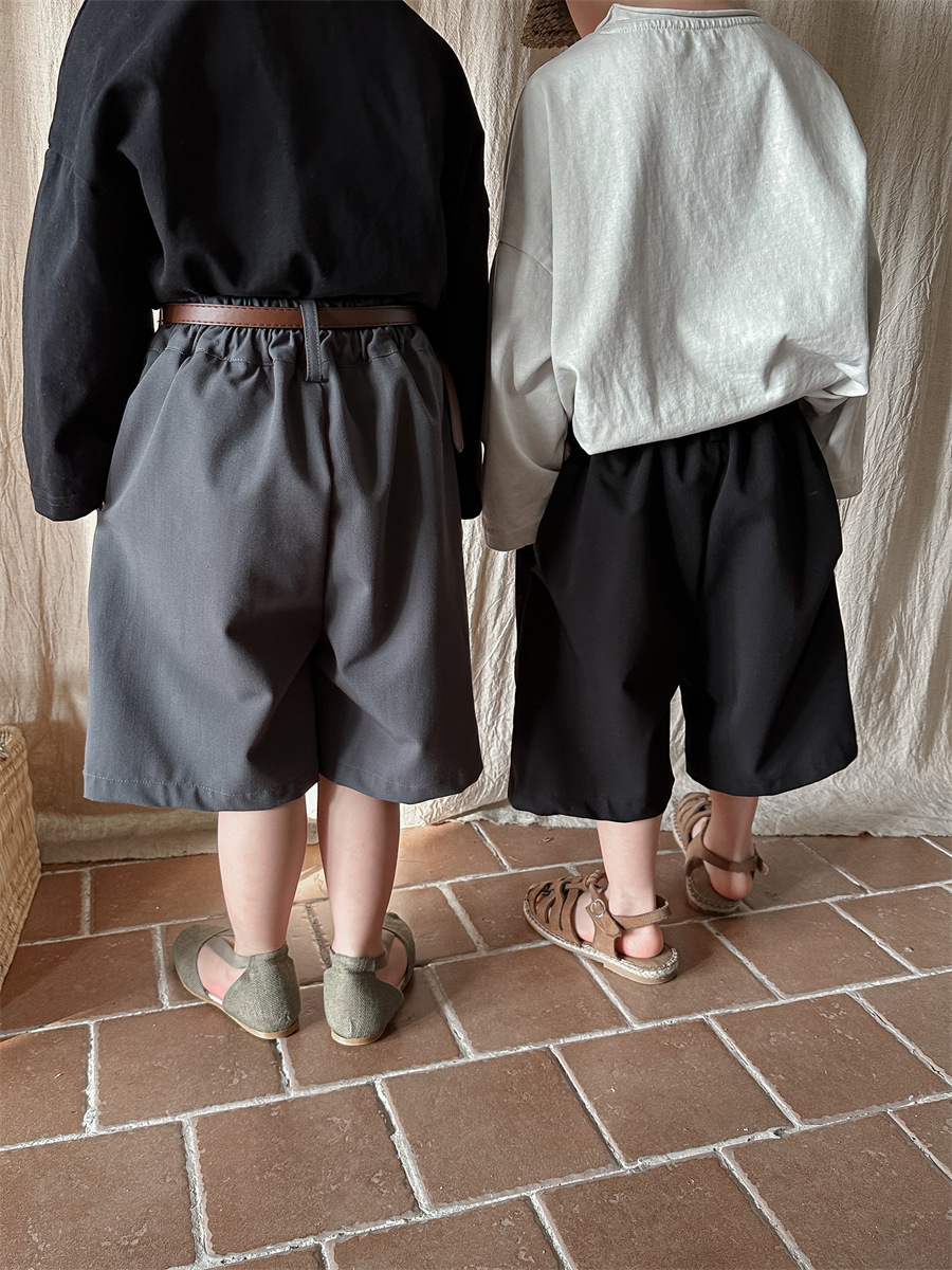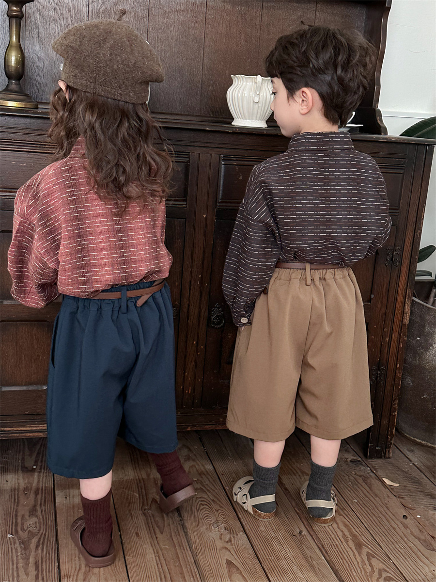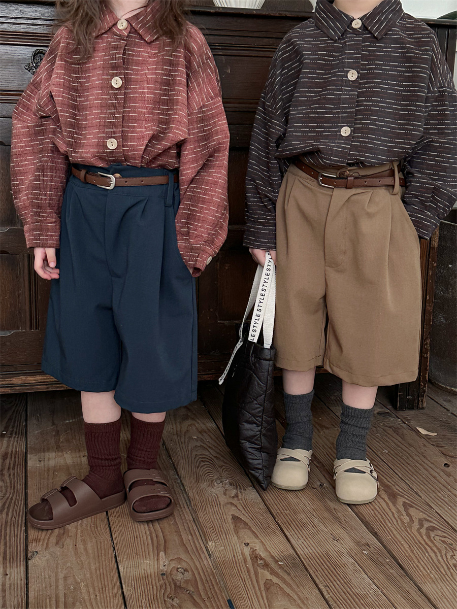 Jiaye 어린이 제품 2025 어린이 봄, 가을 정장 반바지 남성과 여성 아기 숲 스타일 복고풍 중간 바지 5부 바지 무료 벨트