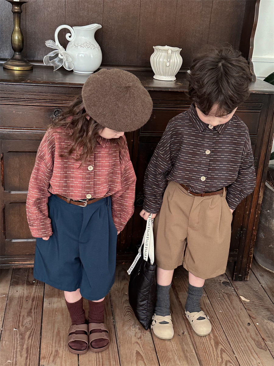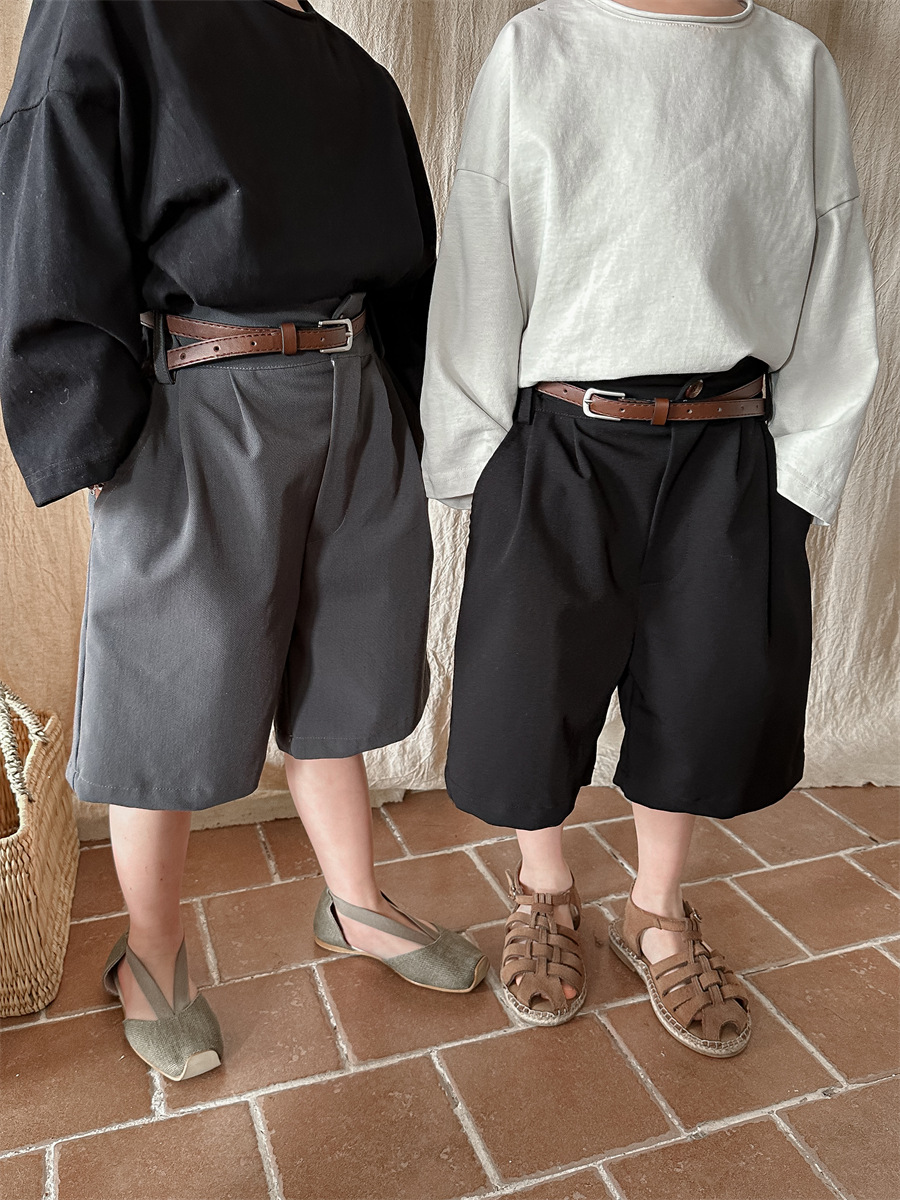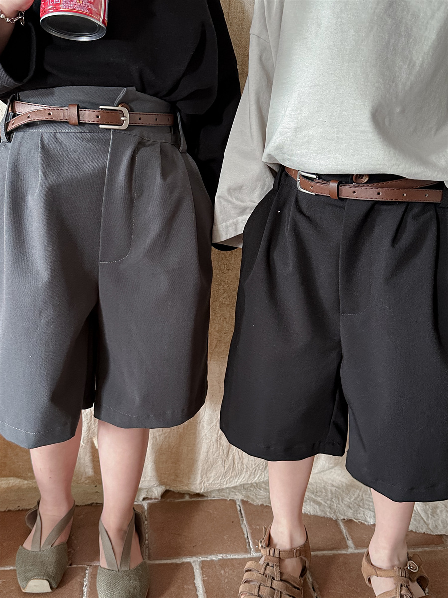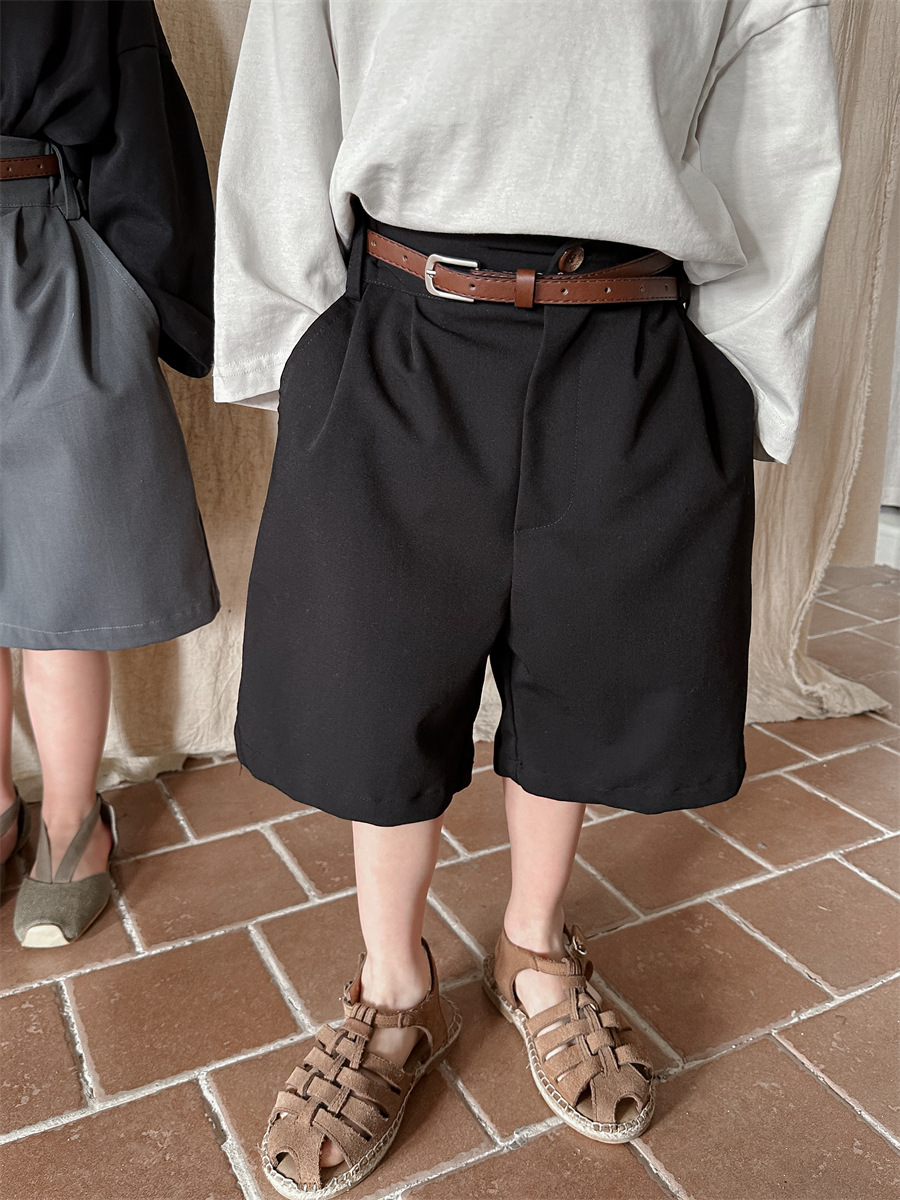 Jiaye 어린이 제품 2025 어린이 봄, 가을 정장 반바지 남성과 여성 아기 숲 스타일 복고풍 중간 바지 5부 바지 무료 벨트