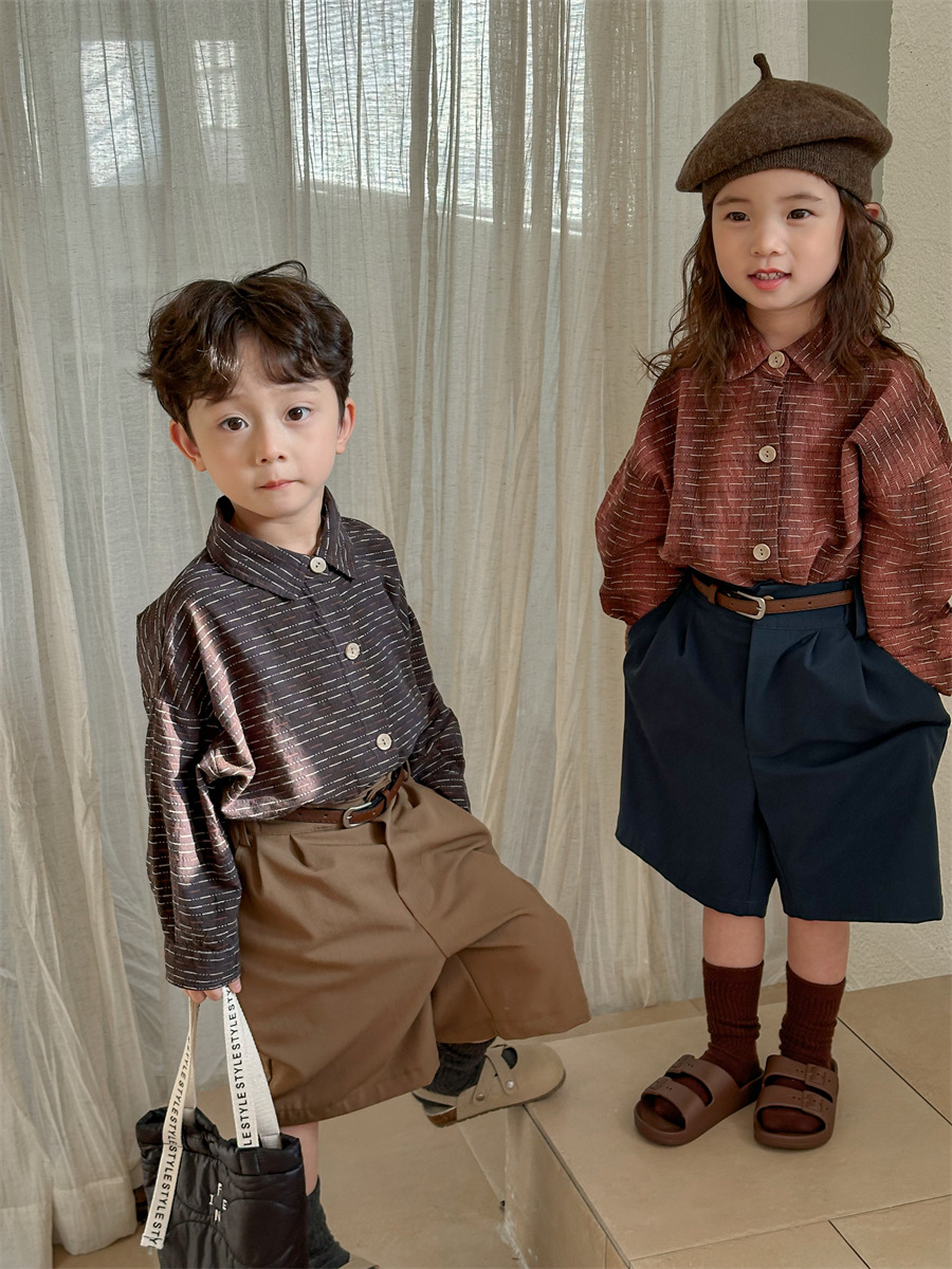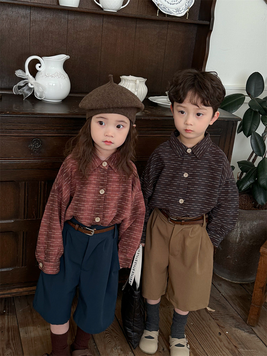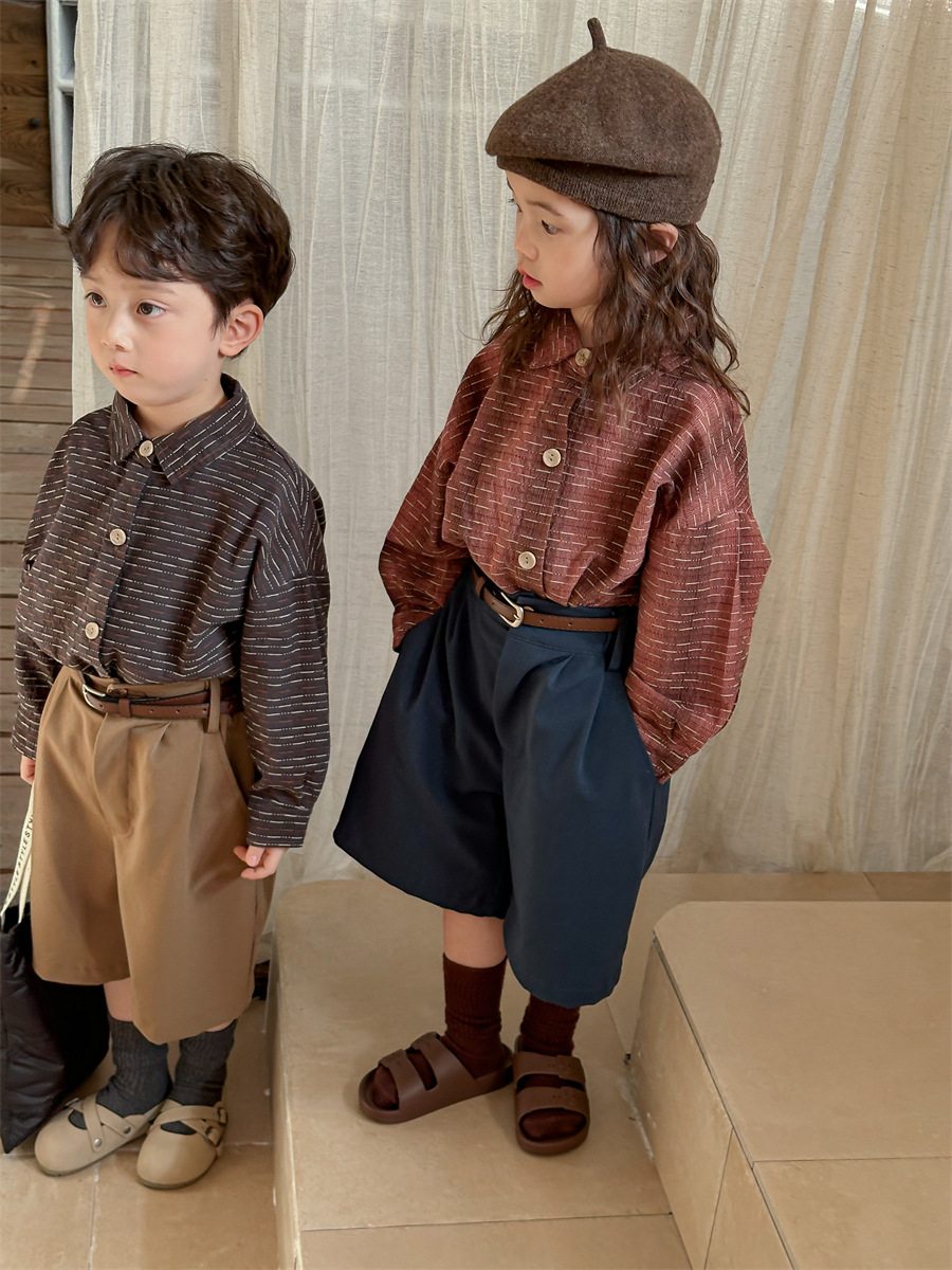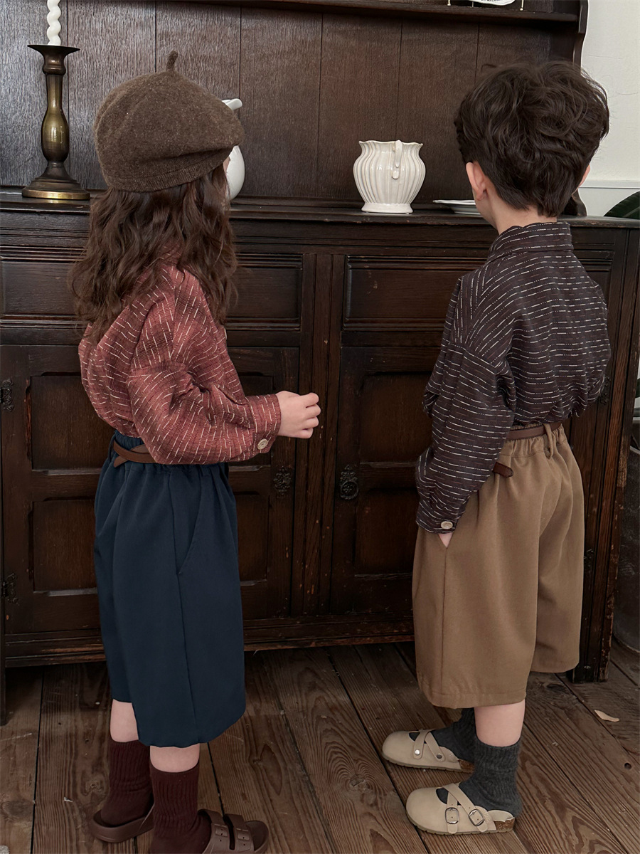 Jiaye 어린이 제품 2025 어린이 봄, 가을 정장 반바지 남성과 여성 아기 숲 스타일 복고풍 중간 바지 5부 바지 무료 벨트스토어 가기