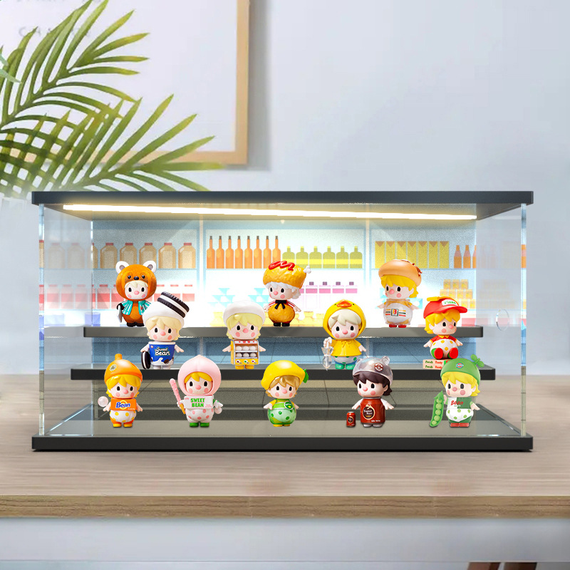 적당한 거품 마트 장난감 방진 상자 달콤한 콩 슈퍼마켓 2 시리즈 장면 전시 상자 투명한 저장 상자