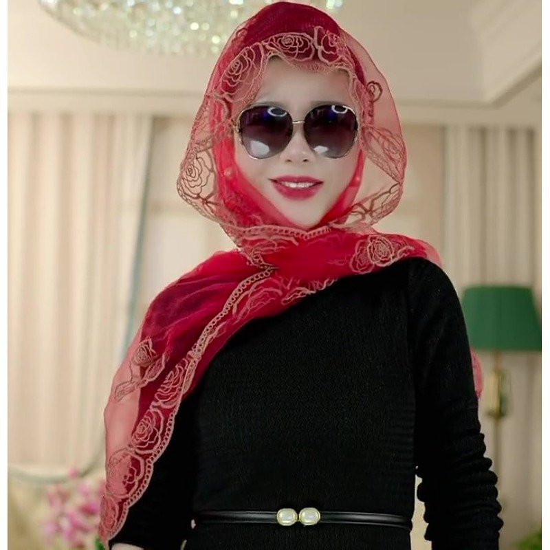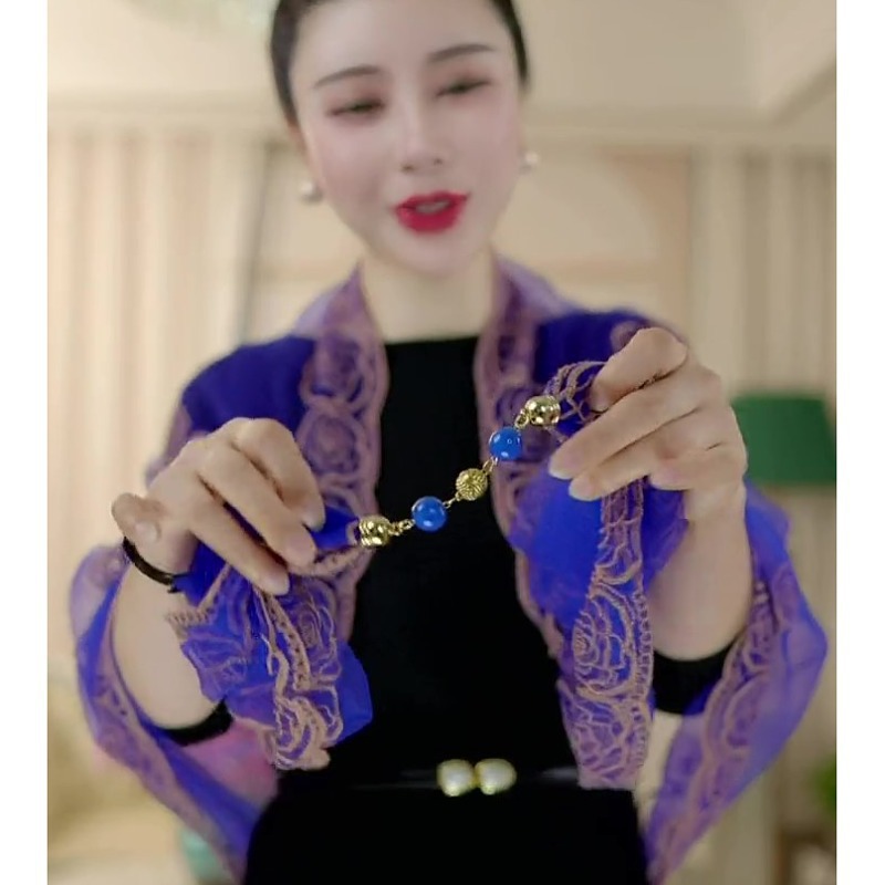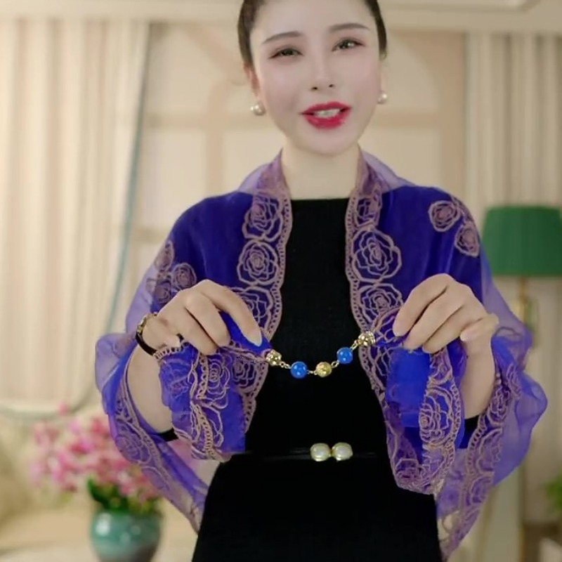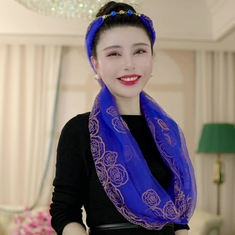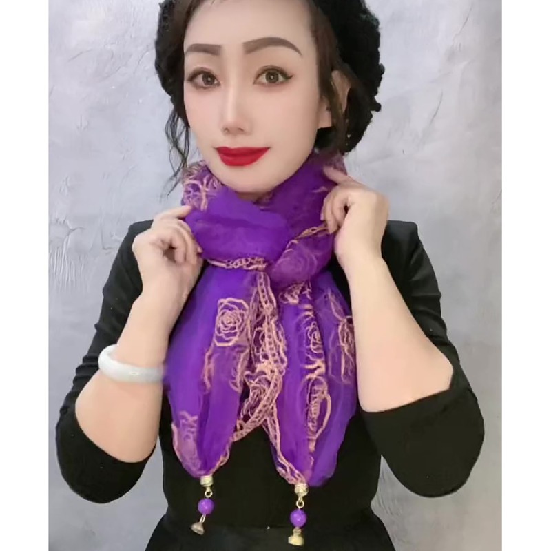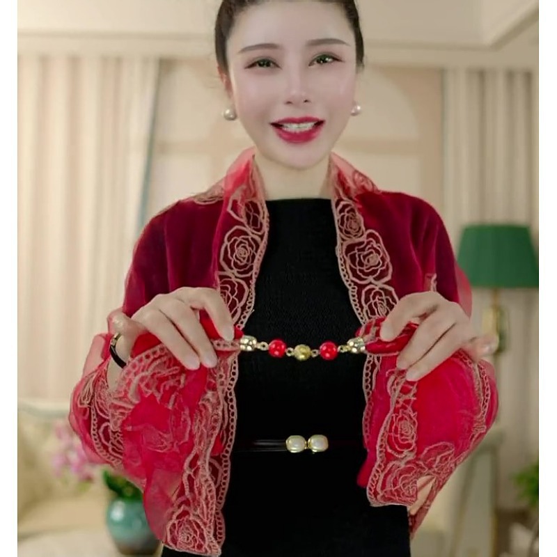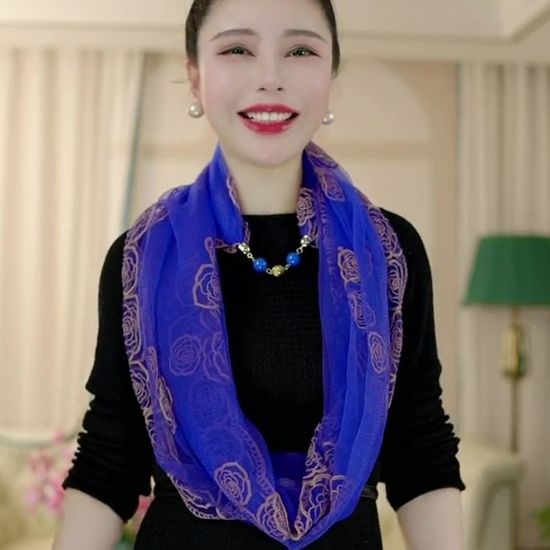 80*80 민족 스타일 구슬 마그네틱 버클 자수 스퀘어 스카프 다기능 스카프 세련된 올 매치 자수 스카프 여성스토어 가기