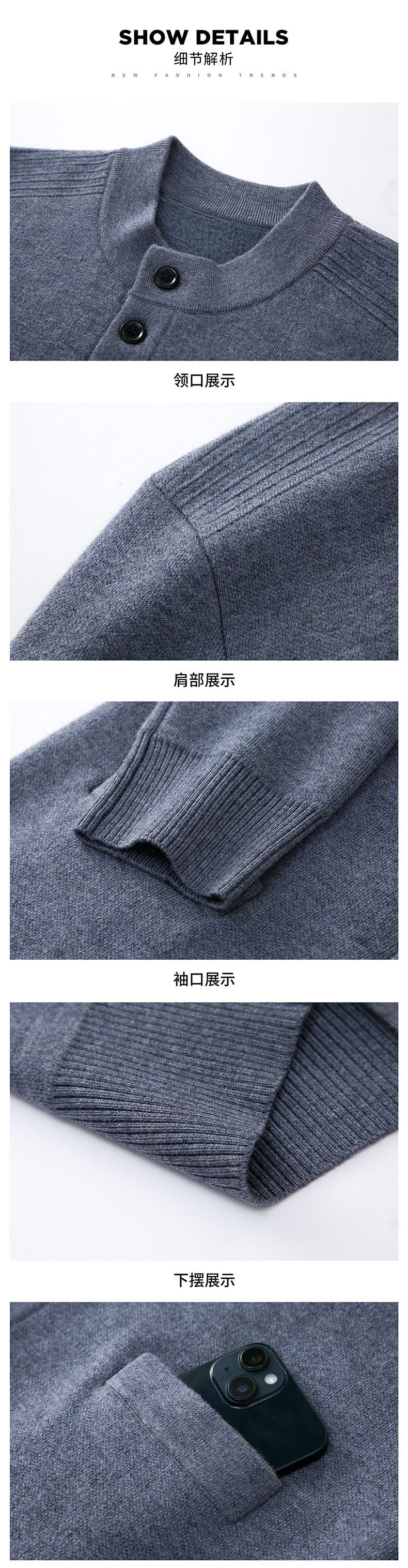 원피스 배달 기모 두꺼운 가을과 겨울 긴 소매 스탠드 칼라 카디건과 양모 남성용 따뜻한 남성용 스웨터 포켓스토어 가기