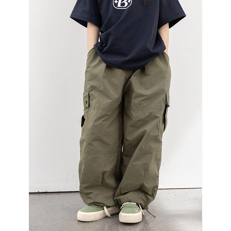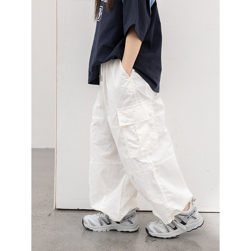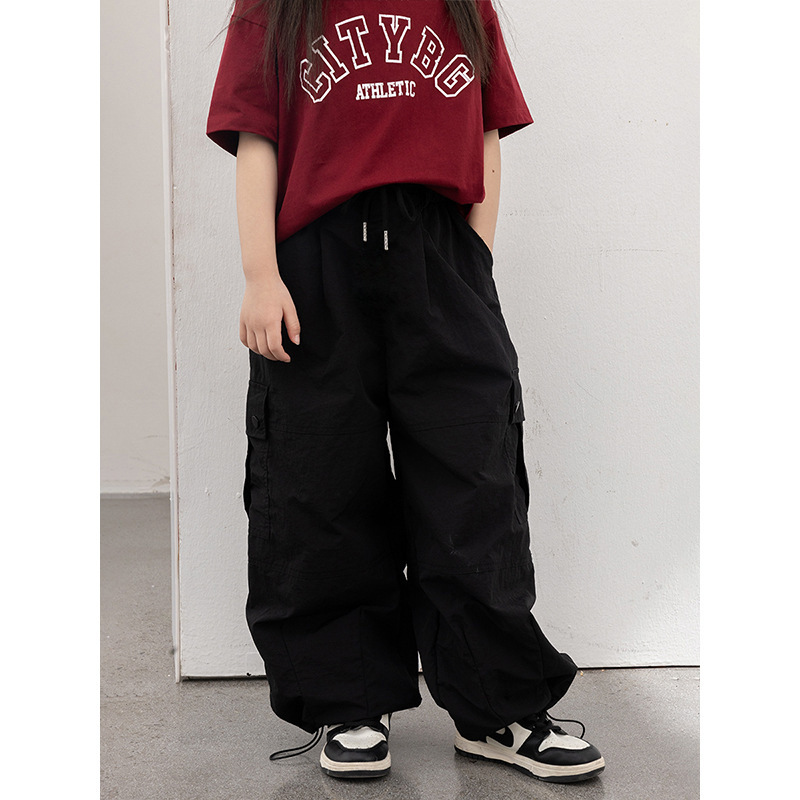 어린이 작업 바지 2024 가을 새 소녀의 미국 스타일 디자인 센스 빠른 건조 와이드 레그 바지 스포츠 바지스토어 가기