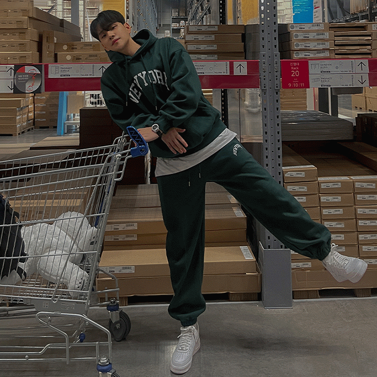 【재고정리】캐주얼 스포츠 세트 레터 프린트 풀오버 스웨트셔츠 남성용 봄 신상 루즈핏 조거 팬츠스토어 가기