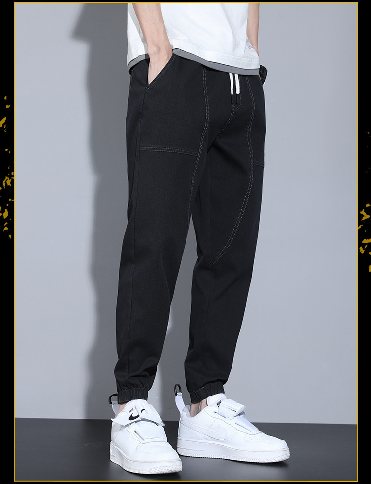 청바지 남자의 가을과 겨울 한국 스타일 Ins 패셔너블 브랜드 느슨한 플러스 사이즈 터트 팬츠 패션 라벨 느슨한 느슨한 허리 캐주얼 바지