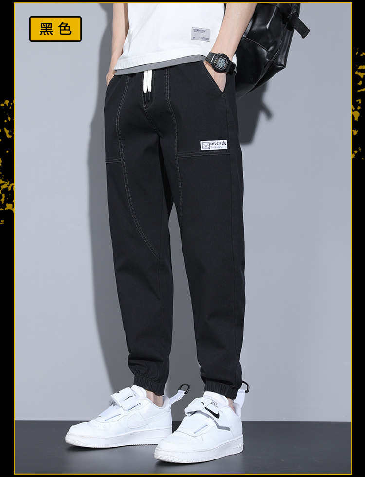 청바지 남자의 가을과 겨울 한국 스타일 Ins 패셔너블 브랜드 느슨한 플러스 사이즈 터트 팬츠 패션 라벨 느슨한 느슨한 허리 캐주얼 바지스토어 가기
