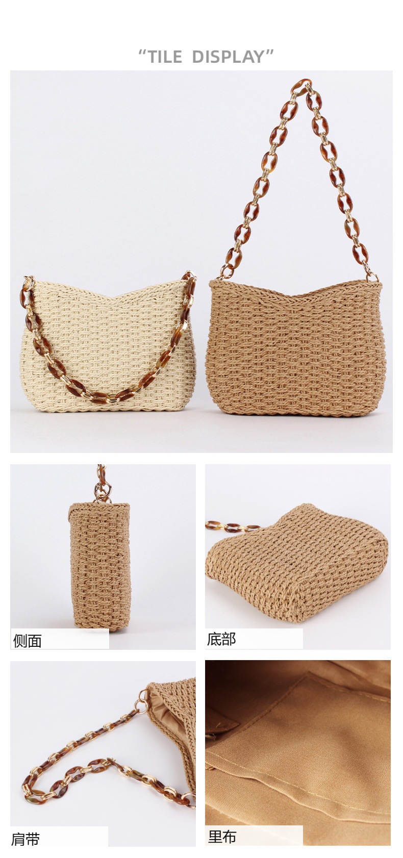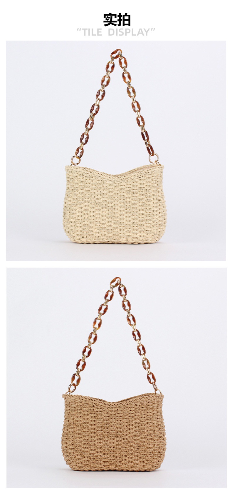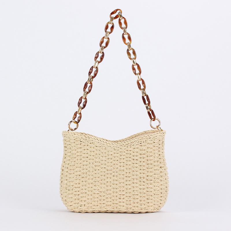 드롭쉬핑 아크릴 앰버 체인 종이끈 땋은 가방, 유니크하고 심플하며 다용도로 활용 가능한 숄더백, 여성용 통근 가방