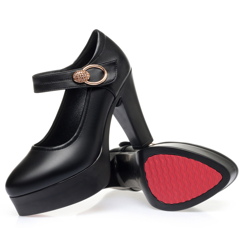 봄 새로운 여성 신발 하이힐 두꺼운 단독 편안한 미끄럼 방지 가죽 신발 유행 우아한 방수 플랫폼 쇼 여성 싱글 레이어 신발스토어 가기