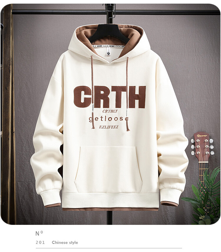 2025 가을, 겨울 솔리드 컬러 스웨트 셔츠 남자 중학생 유행 가짜 투피스 탑 중국 스타일 자수 후드스토어 가기