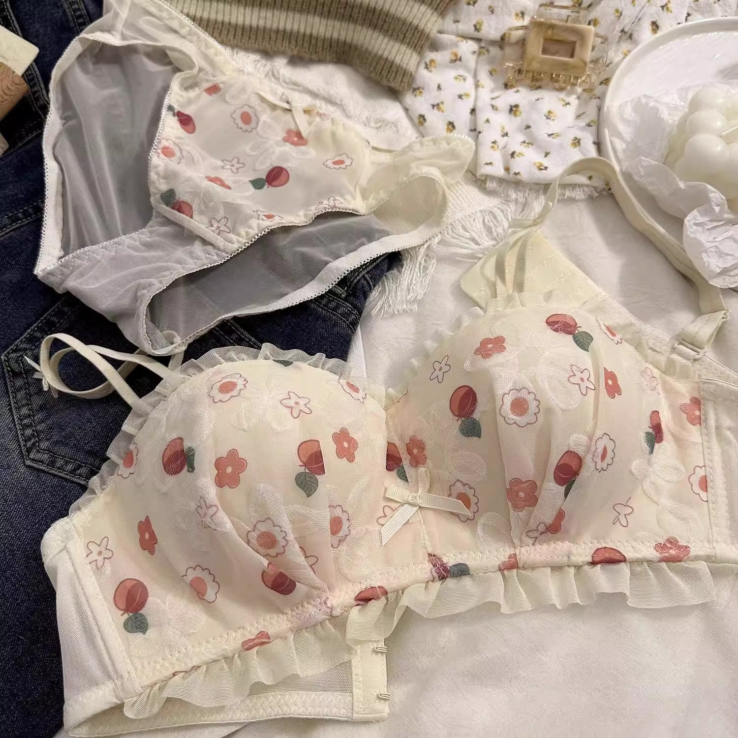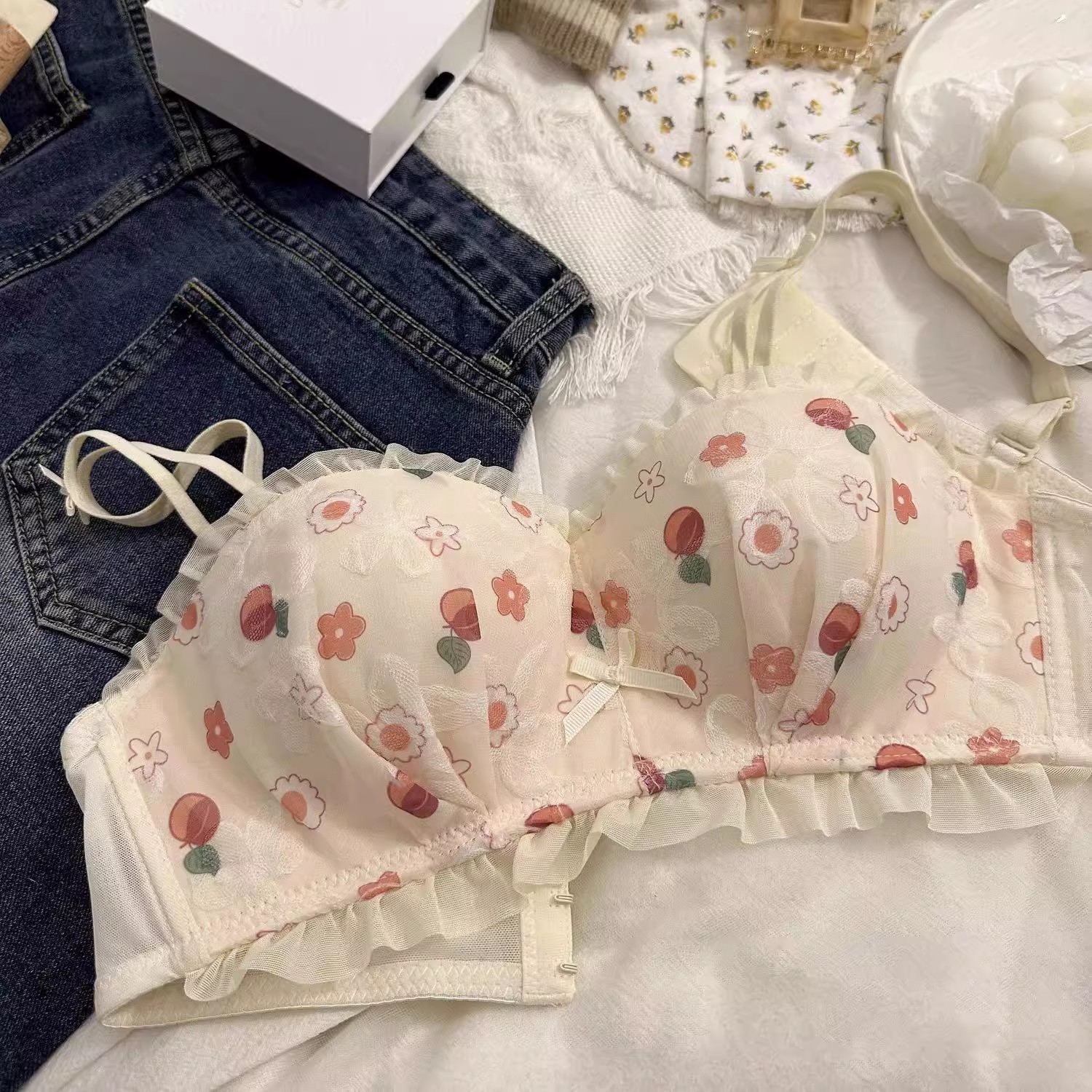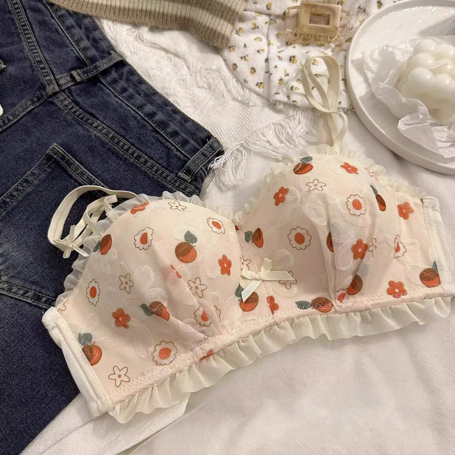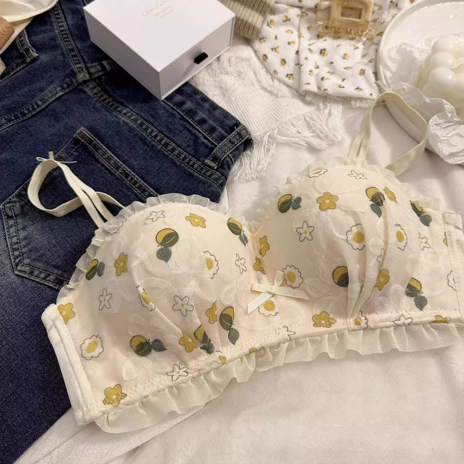 소녀의 패션 섹시한 반지가없는 편안한 속옷 작은 유방 푸시 업 조정 가능한 편안한 브래지어 세트