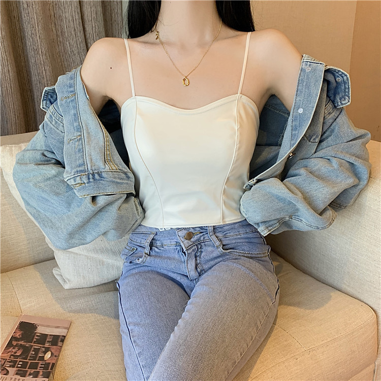 한국식 뷰티 백 속옷 올인원 카미 솔 조끼 PU 가죽 외부 착용 가슴 패드 슬림 핏 내베이스 재킷스토어 가기
